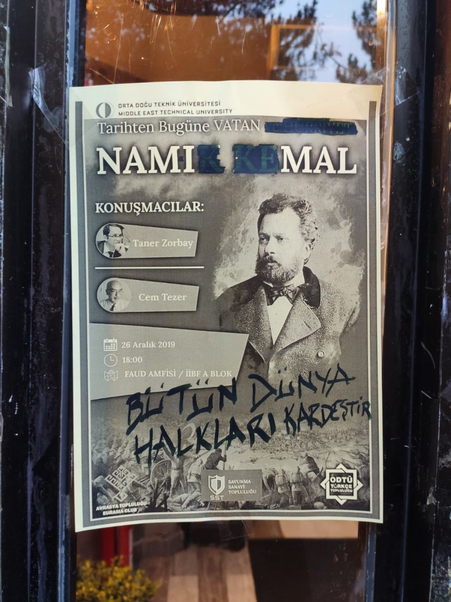 ODTÜ Savunma Sanayi Topluluğu, Avrasya Topluluğu ve Türkçe Topluluğu’nun birlikte düzenlediği “Tarihten Bugüne Vatan ve Hürriyet: Namık Kemal” etkinliği ODTÜ’nün sevilen hocaları Taner Zorbay ve Cem Tezer’in katılımıyla 26 Aralık Perşembe günü İİBF A Blok Faud Amfisi’nde gerçekleşecek.