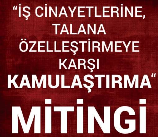 İş cinayetlerine, talana, özelleştirmeye karşı kamulaştırma mitingi!