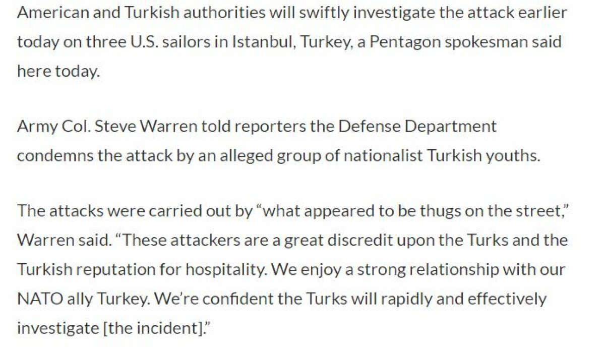TGB, 10 yıl önce karar aldı: ‘Çuvallarımız hazır, nerede ABD askeri görürsek kafasına geçireceğiz.’ Gençler, 2011’de Bodrum’da, 2012’de Antalya’da, 2013’te İskenderun’da, 2014’te İstanbul’da, 2016’da İncirlik Üssü’nde ve önceki gün Sarayburnu’nda sözünü tuttu. Pentagon bu eylemlerden rahatsız.