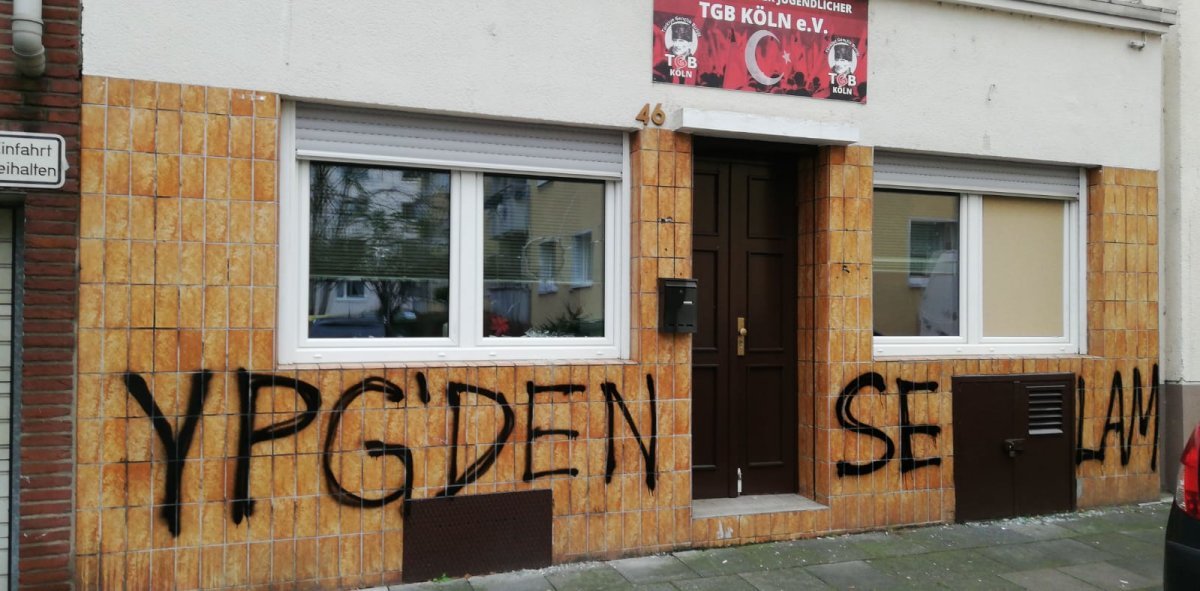 Almanya’nın Köln kentinde, gece saatlerinde bir grup PKK’lı, Köln’de bulunan büromuza saldırı gerçekleştirdi! İçeri giremeyen terör örgütü üyeleri, büronun duvarına “YPG’den Selam” yazdı. Teröristler ayrıca camları kırdı ve büronun çeşitli yerlerine zarar verdi.