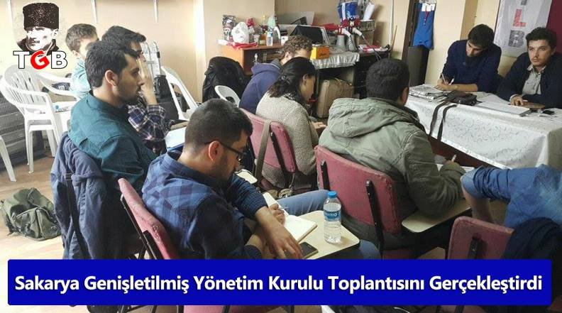 TGB Sakarya İl Örgütü, Genel Başkan Yardımcımız Cem Dikmen’in katılımıyla genişletilmiş yönetim kurulu toplantısı düzenledi. Toplantıda, bölücü terör örgütü Pkk’ya karşı Türk milletini birleştirme görevimizin olduğu ve  Tsk’nın yanında olunacağı vurgusu yapıldı. Yeni döneme görev değişiklikleriyle giren örgütümüzün il sekreterliğine Tarık Kaşlı, il saymanlığına Deniz Karadağ, üniversite sorumluluğuna Mustafa Kaya, TLB  sorumluluğuna Erdi turan ve Basın propagandaya Furkan Akil getirildi. ‘’ 4 Yapraklı Yonca Harekatı ’’ ile kültür yaratma, araç yaratma, birebir ilişki kurma ve eğitim çalışmalarıyla dönemin planlaması yapıldı.