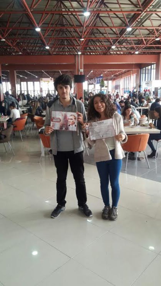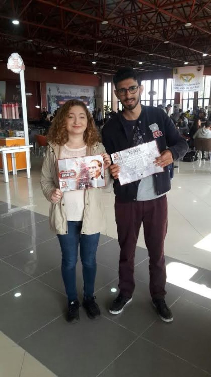 Üniversitede bildiri dağıtan TGB üyeleri, üniversite öğrencilerini Atatürkçü Gençliğe katılmaya davet etti. Türkiye’nin geleceğinden kaygı duyan ve çözüm arayan tüm arkadaşlarımızı üye olmaya davet ediyoruz!