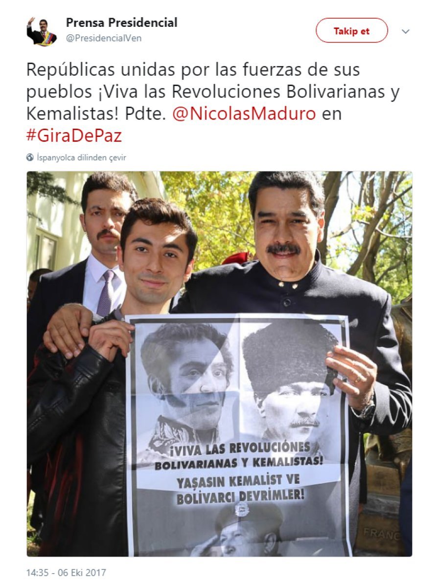 TGB’lilerin Nicolas Maduro ile çektirdiği fotoğraf, Venezuela Devlet Başkanlığı Basın Ofisi resmi Twitter hesabı tarafından da paylaşıldı.