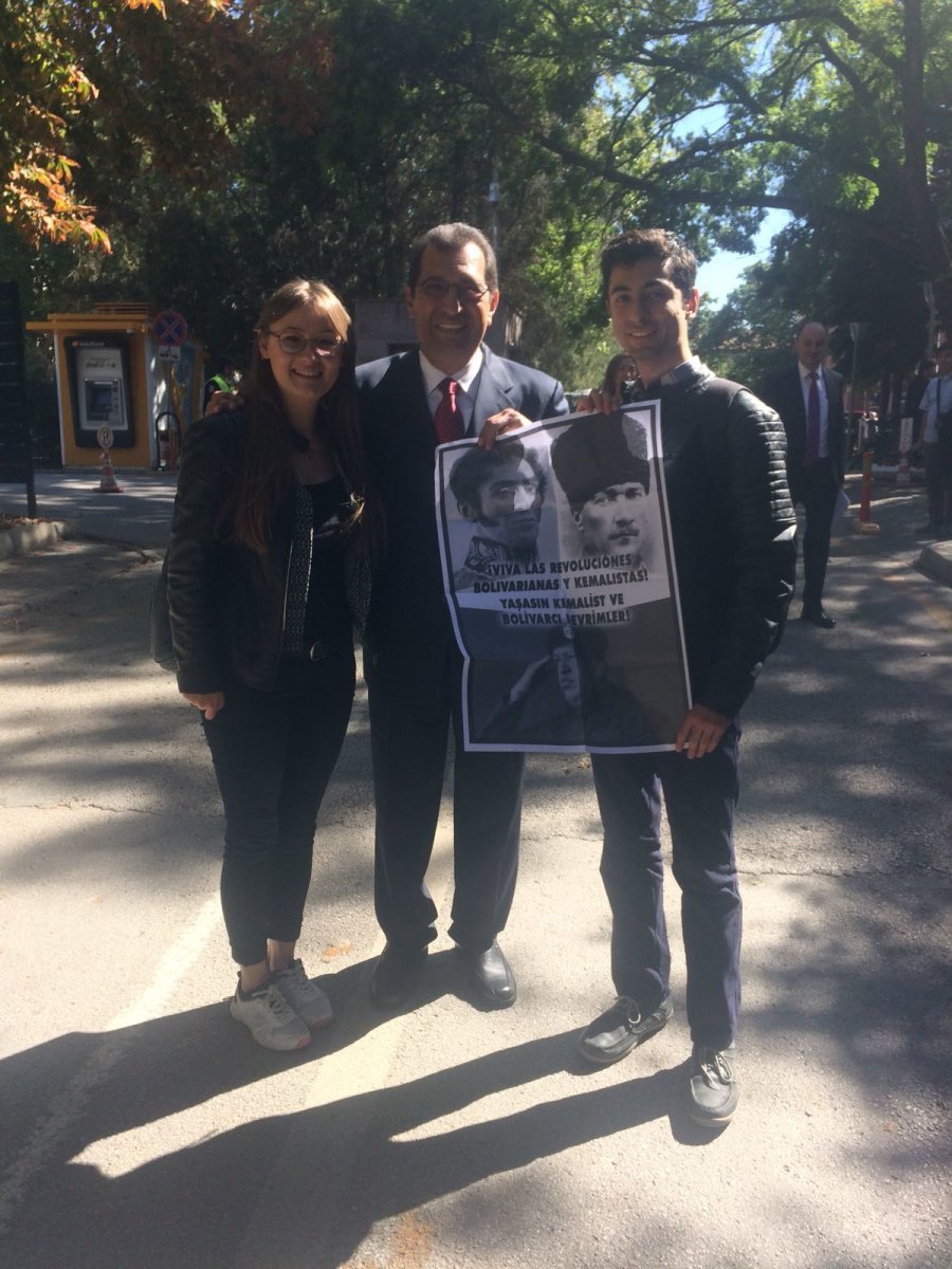 Ankara Üniversite’sine gelen Bolivarcı Venezuela Cumhuriyeti Devlet Başkanı Nicolas Maduro ve Hugo Chavez’in ağabeyi Adan Chaves’i TGB’liler karşıladık.