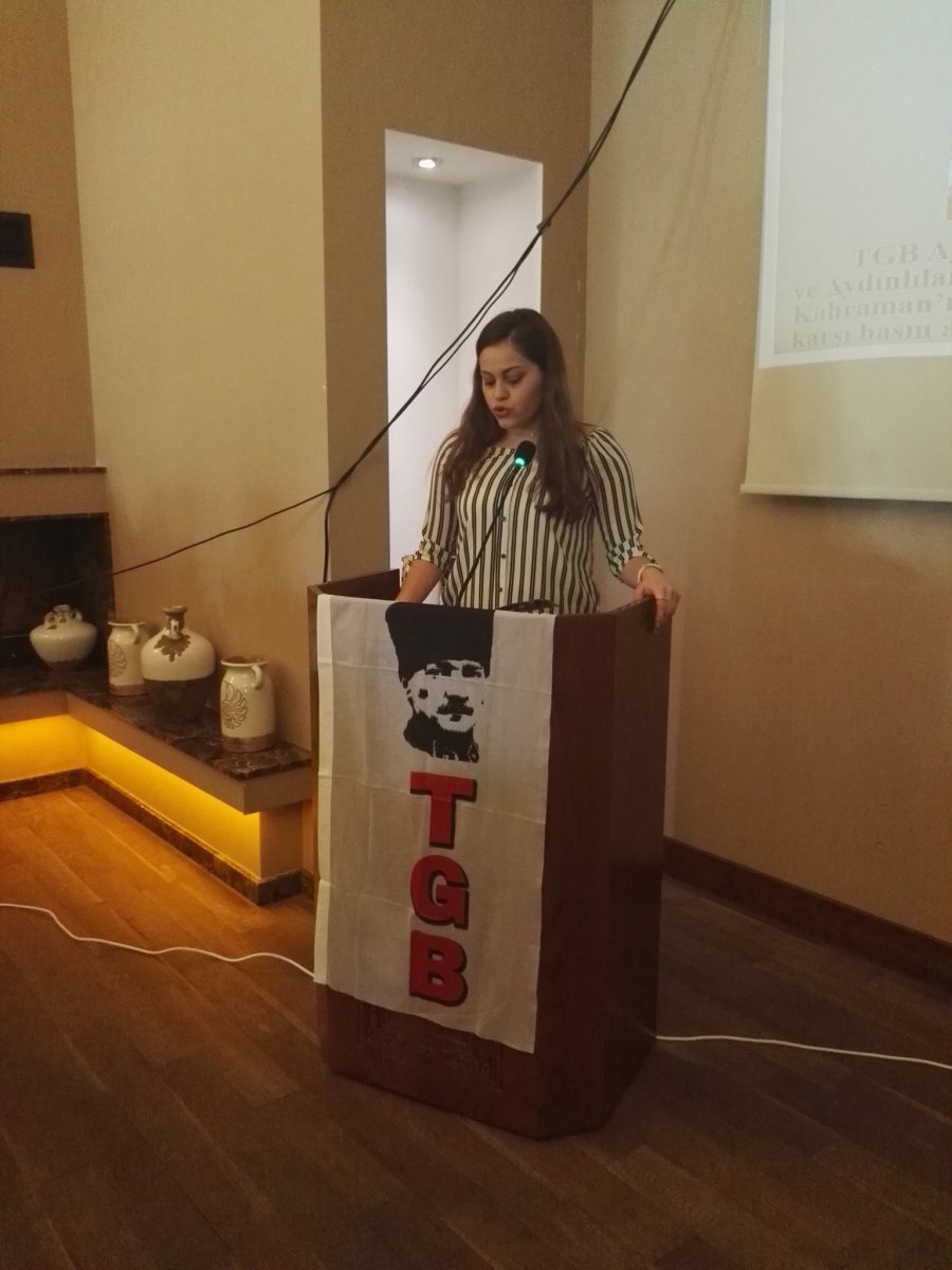 İl Başkanlığına seçilen İrayda Begüm Bay yaptığı konuşmada, “Emperyalizme ve onun piyonlarına karşı Mehmetçiğin, polisin, devletin yanında dimdik duran, 12 yıldır sadece Türkiye Gençlik Birliği vardır. Vatansever, Atatürkçü Kemalist Devrimi tamamlamayı kendisine hedef olarak koymuş birleşme noktası olan Türkiye Gençlik Birliği’dir. Bizler Atatürk’ün Gençliğe Hitabesi’nden aldığımız görev ve Onbeşlilerden aldığımız feyz ile her zaman Mehmetçiğimizin yanındayız” dedi. Toplantı sonunda TGB Aydın üyeleri Afrin’de mücadele veren kahraman Mehmetçiğe selam göndermeyi ihmal etmedi.