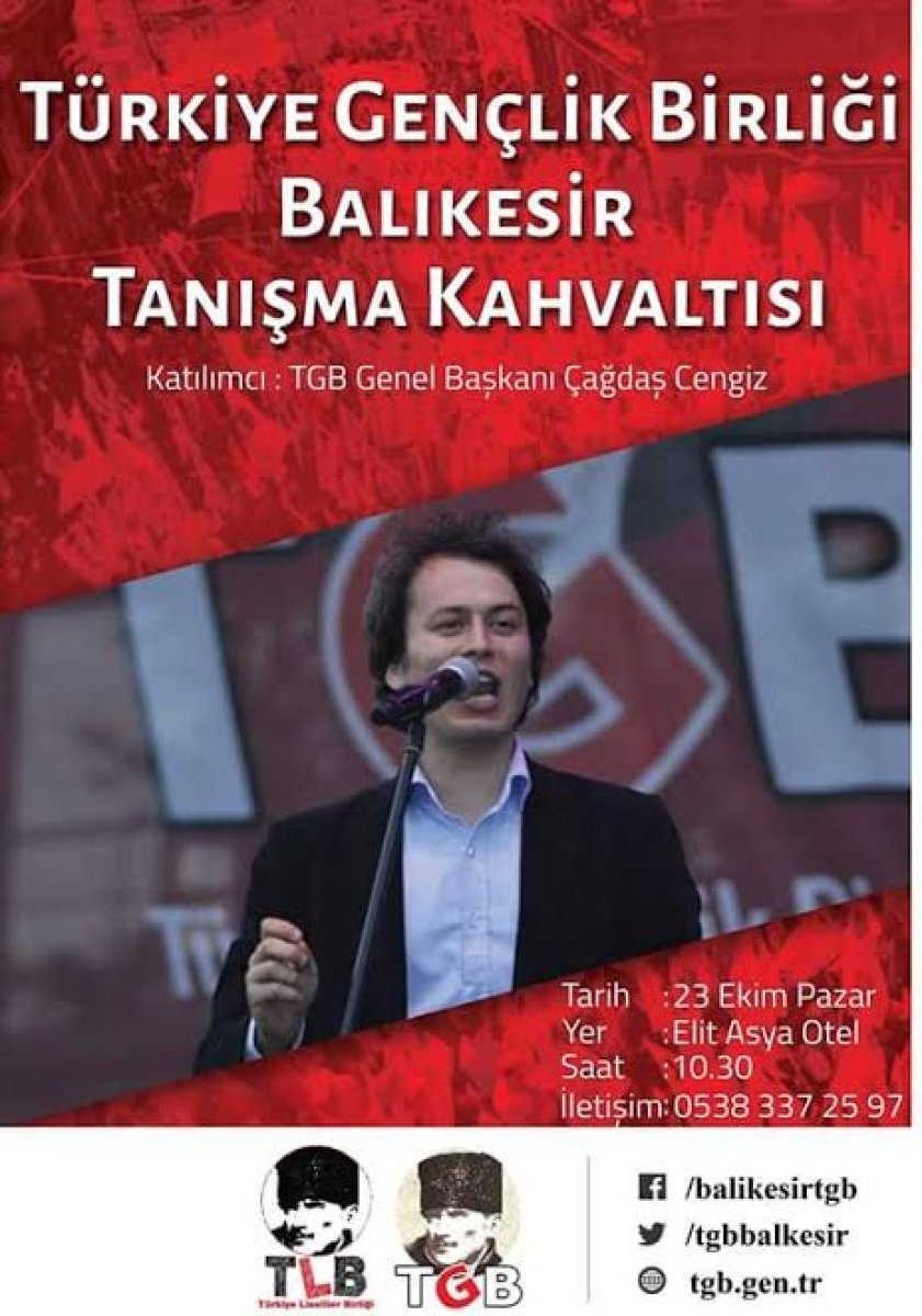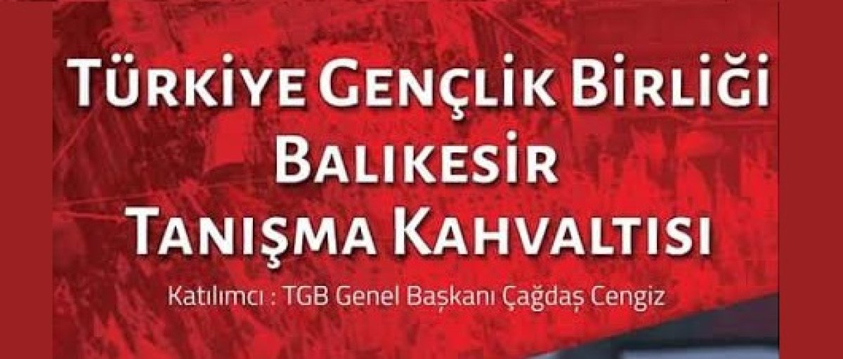 TGB Balıkesir İl Örgütü, 23 Ekim Pazar günü Elit Asya Otel’de Genel Başkan Çağdaş Cengiz’in katılımıyla gerçekleşecek olan tanışma kahvaltısıyla yeni dönemi açıyor. TGB Balıkesir, bütün vatanseverleri tanışma kahvaltısına davet ediyor.