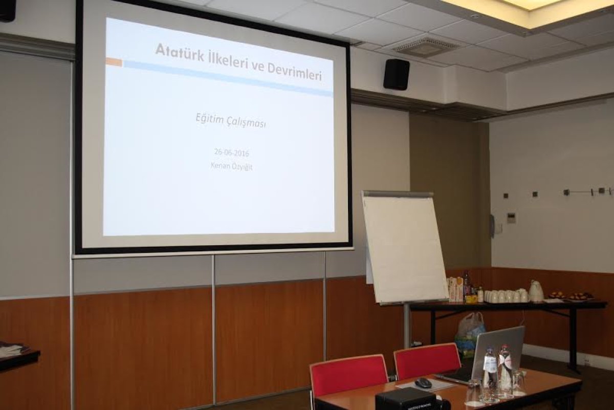 . TGB Avrupa Eski Genel Sekreteri Kenan Özyiğit’in konuşmacı olarak katıldığı eğitimde, Atatürk Devrimleri’nin fikir kaynakları tartışıldı. Mustafa Kemal Atatürk’ün özellikle Fransız Devrimi ve Rus Ekim Devrimi’nden esinlendiğini dile getiren Kenan Özyiğit, Atatürk İlkeleri’ni teşkil eden Altı Ok’unun da bu devrimlerin birer yansıması olduğunu ifade etti.