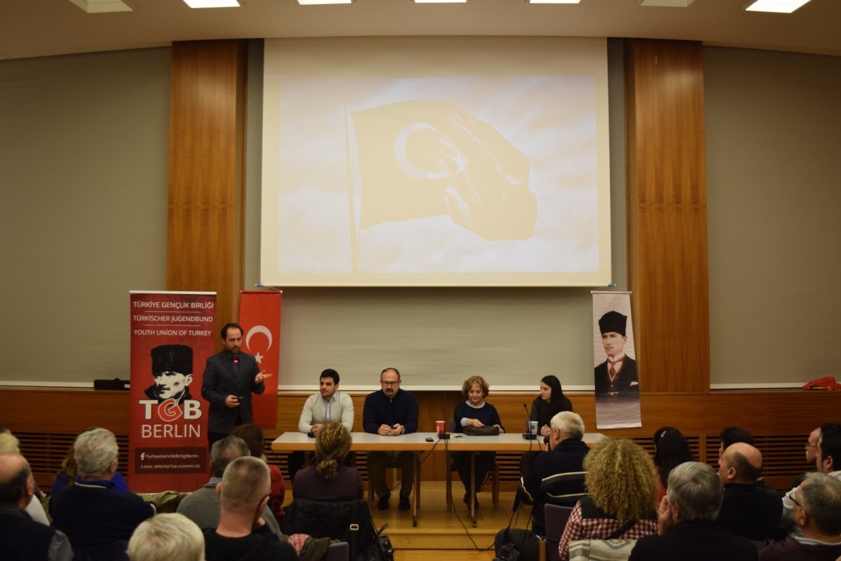 Türkiye Gençlik Birliği Berlin, 11 Şubat Cumartesi günü Metal İşçileri Birliği’nin binasında (İG Metall-Haus) ‘Yeni Anayasa ve Başkanlık Sistemi – Emperyalist tehditler ve küresel dayatmalar’ konferansını gerçekleştirdi. Yurtdışı temsilciliklerinde referandumda oy kullanma sürecinin başlamasına altı hafta kala ‘Hayır’ çalışmalarını başlatan TGB’liler, konuşmacı olarak 24. Dönem CHP İzmir Milletvekili Prof. Dr. Birgül Ayman Güler, Emekli Hava Pilot Kurmay Albay Osman Başıbüyük ile TGB Genel Başkan Yardımcısı ve Dünya Anti-Emperyalist Gençlik Birliği Genel Sekreteri Elif İlhamoğlu’nu davet etti.