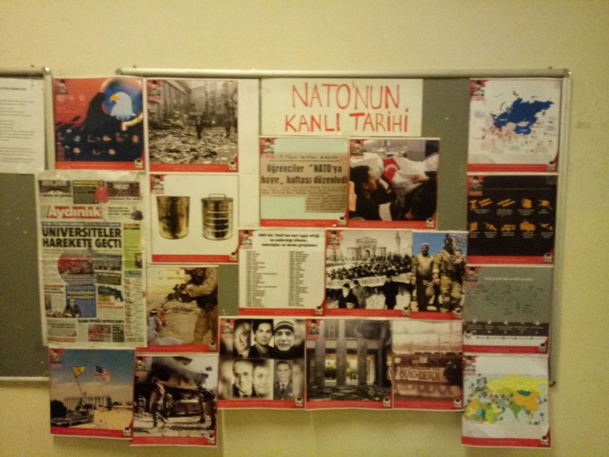 TGB Beyazıt, üniversitelerde başlattığımız “NATO’ya Hayır Haftası” kapsamında üniversitenin panolarını NATO’nun kanlı tarihini sergileyen görsellerle donatarak üniversite öğrencilerine NATO’dan çıkmanın yakıcı gerekliliğini aktardı.