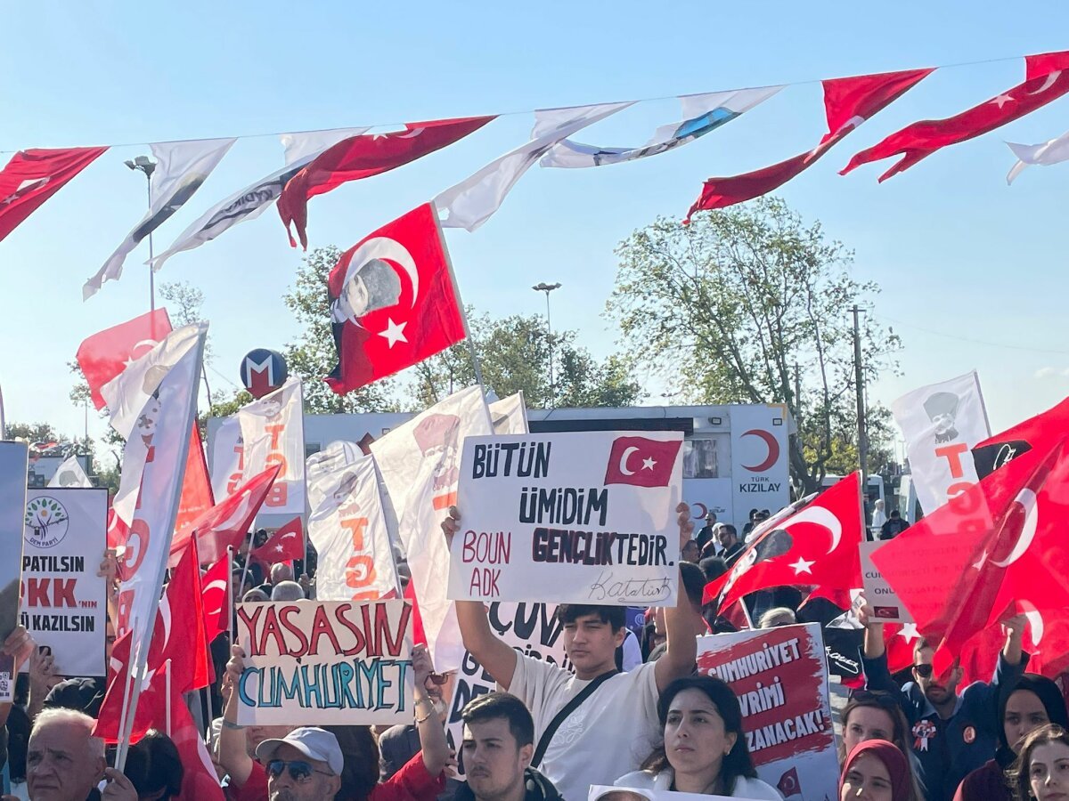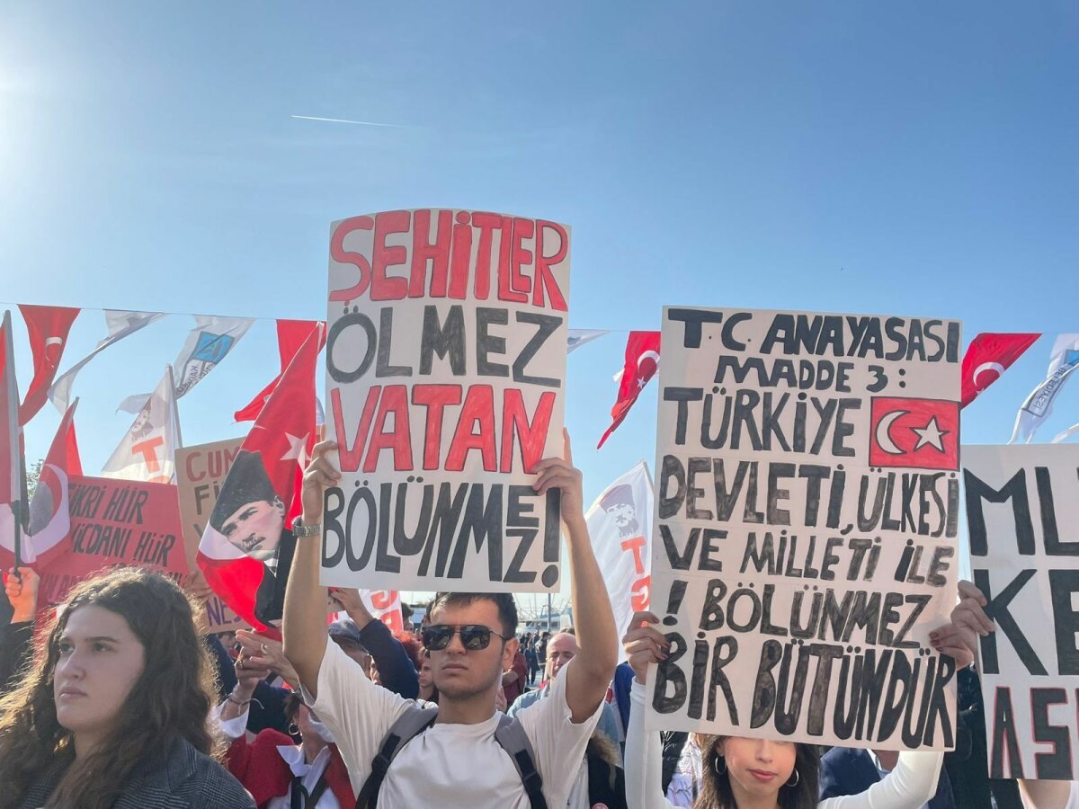 “Sonuna kadar mücadele edeceğiz! Türkiye’yi bölmek parçalamak isteyenlere, anayasamızın ilk dört maddesine dokunmak isteyenlere, PKK ile işbirliği yapanlara Kadıköy’den Meydan okuyoruz! Türkiye’yi bölemeyeceksiniz! Cumhuriyetin, Türk Devriminin sahibi gençlik burada! Sizleri hain planlarınızla birlikte tarihin çöplüğüne göndereceğiz!”