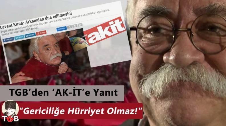 Akit gazetesinin bu çirkin tavrını şiddetle eleştiriyoruz. Gericiliği gazetecilik kılıfı altında öne sürenlerin, kirli ve karanlık düşüncelerinin kökünü kazıyacağımıza söz veriyor, Mahmut Esat Bozkurt’un şu sözünü hatırlatıyoruz: