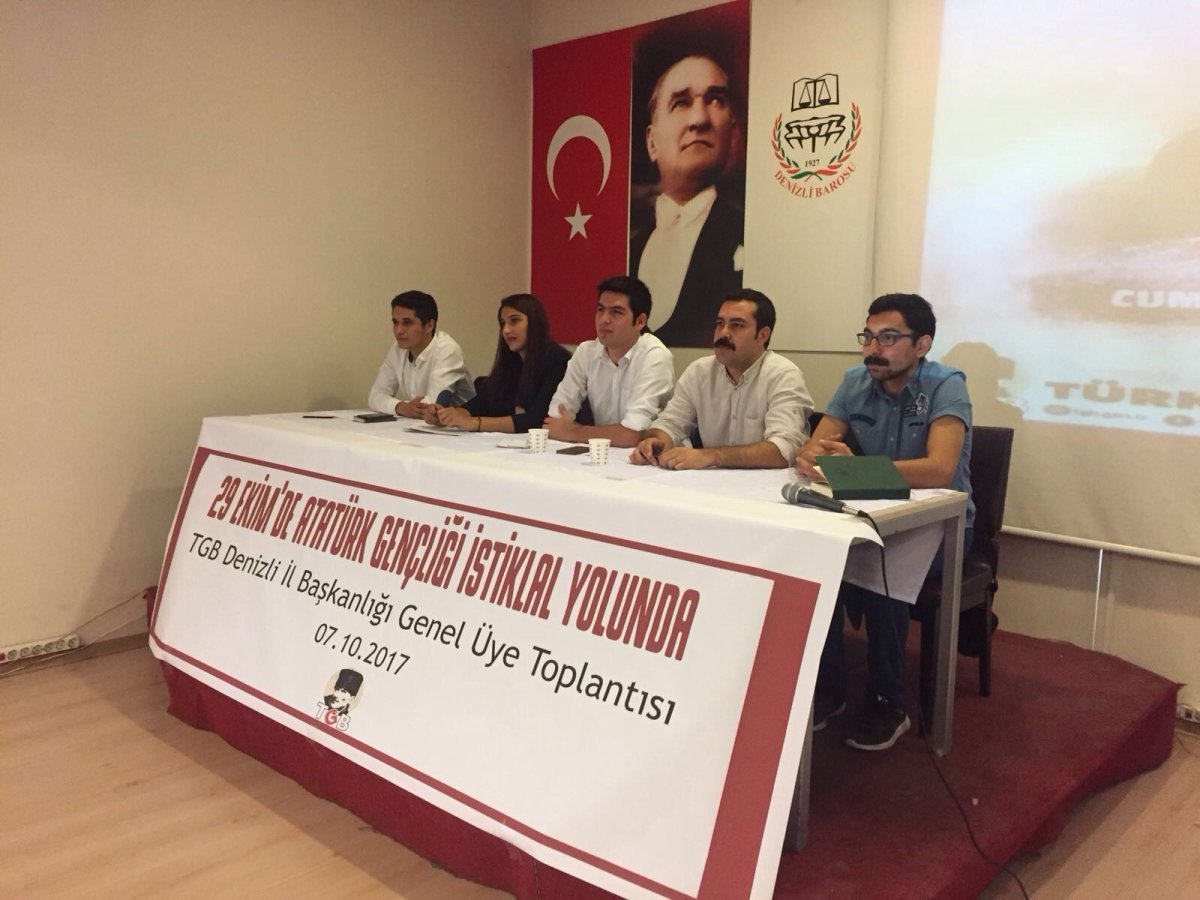 Özgür Bursalı’nın açılış konuşmasının ardından toplantıda siyasi gündemin değerlendirilmesi ile başlandı. Barzani’nin yaptığı sözde referandum ve Atatürksüz müfredata karşı mücadele üzerinde duruldu.  Mücadele takviminde TGB Denizli İl Örgütü 29 Ekim’e dair çalışma takvimini sundu. 29 Ekim’de yapılacak İstiklal Yürüyüşü için üniversitede dağıtacakları bildirilerle, şehir meydanında açacakları stantlarla Denizlilileri İstiklal yürüyüşüne davet edecek.