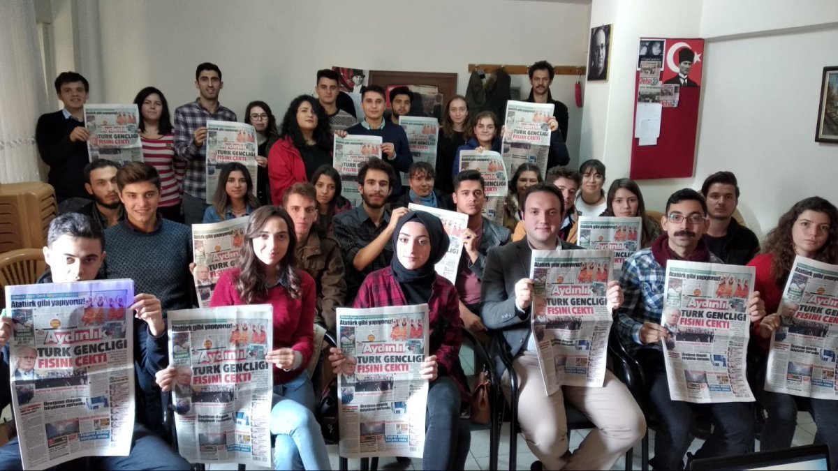Söyleşinin ardından TGB Denizli, Ankara’ya gelen ABD Suriye Özel Temsilcisi Jeffrey’yi protesto edişimizi manşete taşıyan Aydınlık gazetesi ile çalışma yaptı.