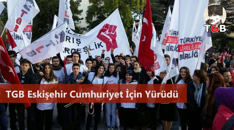 2006 yılından beri Eskişehir’de gelenekselleşen Cumhuriyet Yürüyüşü bu yıl da büyük bir coşkuyla gerçekleştirildi.Yaklaşık 10bin yurttaşın katıldığı yürüyüşte halk hep bir ağızdan “Cumhuriyet değil AKP yıkılacak” şeklinde slogan attı. Adalar Atatürk caddesinden vilayet meydanı Atatürk heykeli önüne yapılan yürüyüş istiklal marşı ve saygı duruşuyla sonlandırıldı.tgb.gen.tr