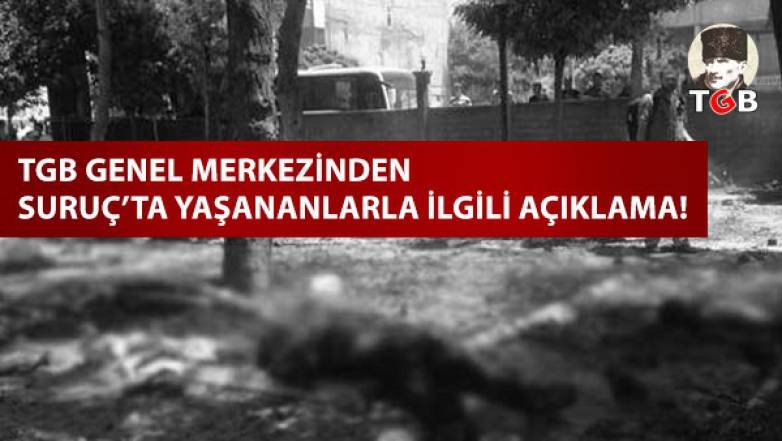 Suruç’ta yaşanan patlama AKP’nin ve Erdoğan’ın Türkiye sınırlarını kevgire çevirerek ülkeyi her türlü teröre açan politikalarının sonucudur. Lanetlenmesi gereken bir terör eylemidir. Yaralananların bir an önce sağlıklarına kavuşması temennimizdir. Hayatlarını kaybedenlerin yakınlarına ve arkadaşlarına baş sağlığı diliyoruz.