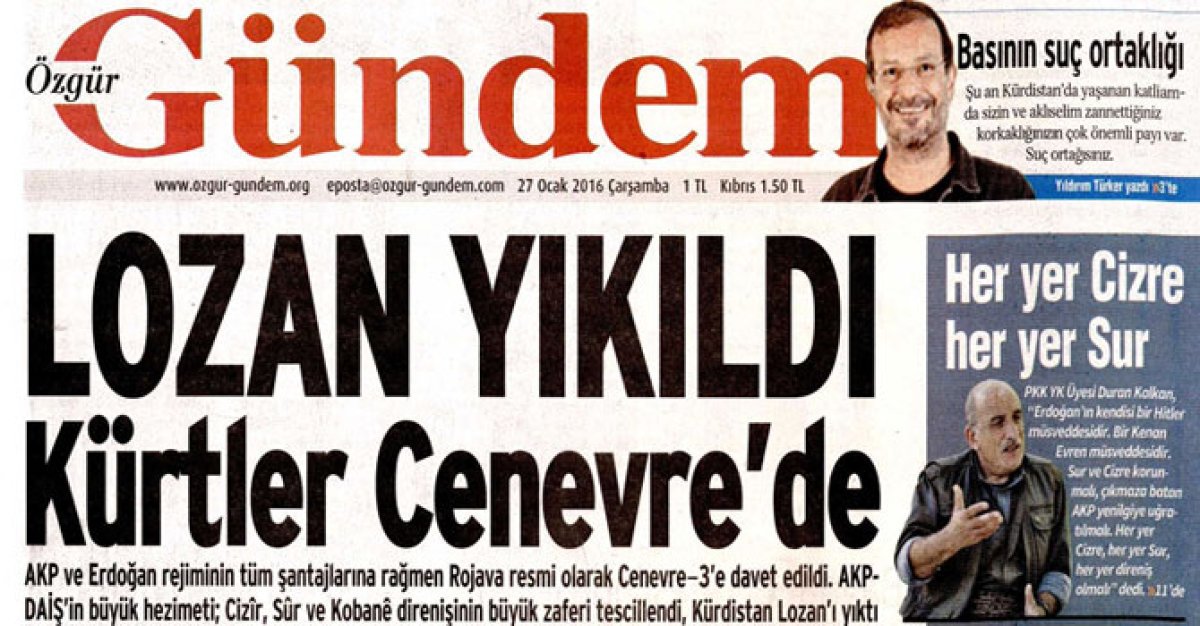Suriye Ordusu’nun ve halkının işgale karşı büyük direnişi devam ederken, Suriye’nin ve bölgenin geleceğinin ele alınacağı Cenevre görüşmelerine, PYD’nin katılması durumu yoğun bir şekilde tartışılıyor. PKK’nın yayın organı Özgür Gündem gazetesi, tartışmaya ilişkin attığı başlıkla sözümüz ona Kürtler adına, Türklerin ve Kürtlerin ortak iradesini belgeleyen Lozan Anlaşması’na sataşma cüretini gösterdi.