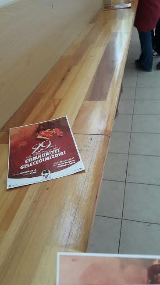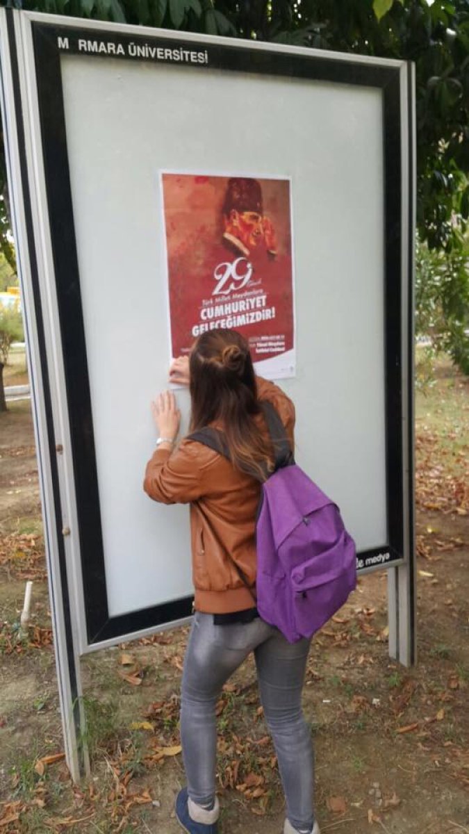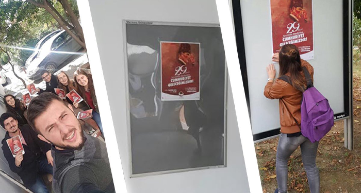 Bildiri dağıtımı yapan ve fakülte panolarına afiş asan TGB’liler, üniversitede 29 Ekim eyleminin atmosferini yaratmaya başladı. TGB Marmara Üniversitesi, Atatürk gençliğini 29 Ekim saat 17:00’da Taksim Tünel’e, Cumhuriyet Devrimi ve Atatürk ilkelerine sahip çıkmaya çağırıyor!