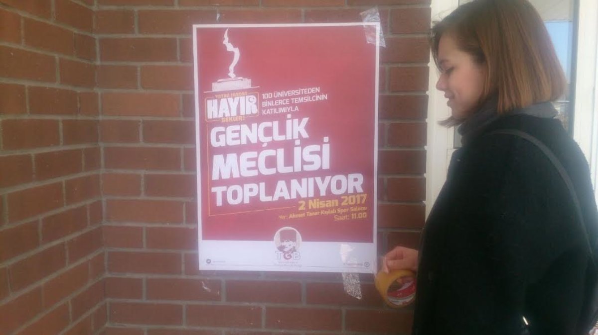 Günün erken saatlerde buluşan TGB’liler, üniversiteyi afişlerle donattı. Yeni anayasayı ve halk oylaması sürecinde gençliğe düşen görevleri tartışmak üzere Gençlik Meclisi’ne davet eden bildiriler dağıtıldı. Hangi siyasi partiye mensup olursa olsun, hangi siyasi partiye oy verirse versin bütün gençliğin Gençlik Meclisi’ne katılması gerektiğini vurgulandı