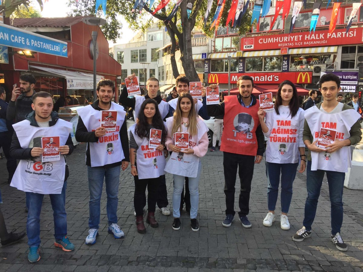 Dağıttıkları bildiriler ve yaptıkları sesli duyurularla vatandaşlarımızı İstiklal Yürüyüşü’ne davet eden TGB İstanbul üyeleri, Beşiktaş Motor İskelesi’nde açtıkları masada yürüyüş katılım kaydı tuttu. Çalışmalar yoğun ilgiyle sürüyor. Mehmetçik cephedeyken, milletimizi cephe gerisinde emperyalizme karşı vatan savunmasında birleştiren TGB, tüm vatandaşlarımızı 29 Ekim’de Birinci Meclis önüne, İstiklal Yürüyüşü’ne çağırıyor!