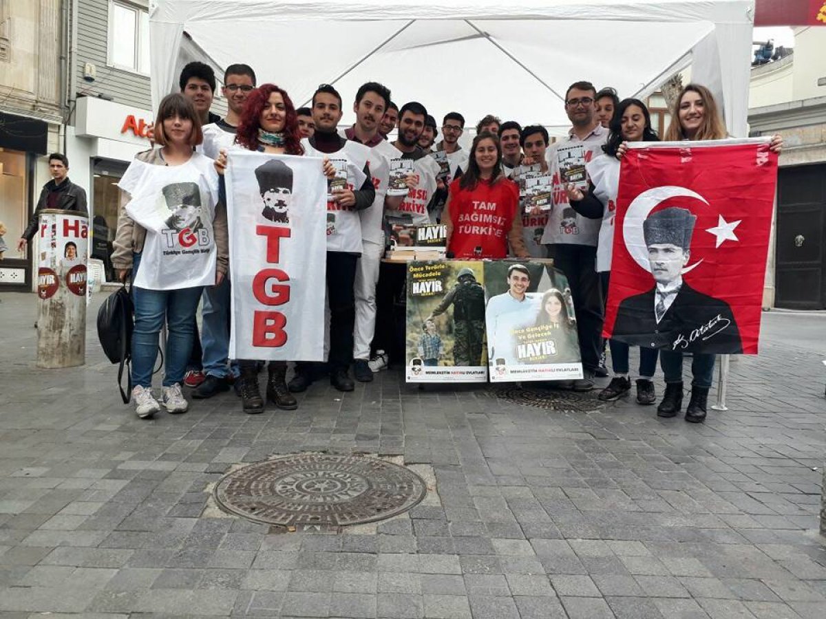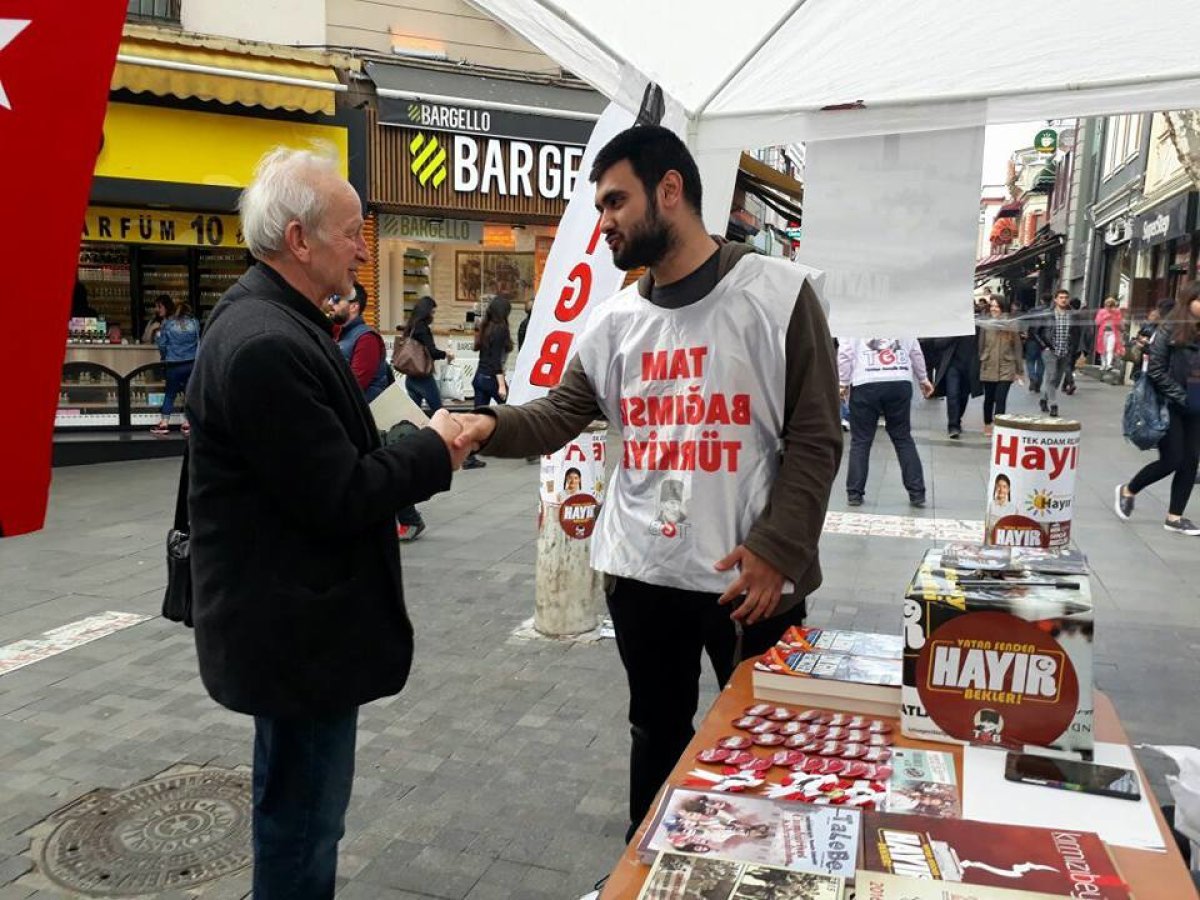 Kampüslerde ve meydanlarda afiş ve bildirilerle çalışma yapan TGB İstanbul’un üyeleri, Kadıköy ve Bakırköy’de açtıkları stantlarla birçok kararsız vatandaşa ulaşıp, neden hayır dediğimizi anlatıyor. Açılan stantlarda birçok yeni üye kaydı alan TGB İstanbul İl Örgütü, çalışmalara gösterilen ilgi oldukça yoğun. Memleketin HAYIRLI evlatları, 16 Nisan’a kadar sahada, 16 Nisan’da da sandıklarda olacak!