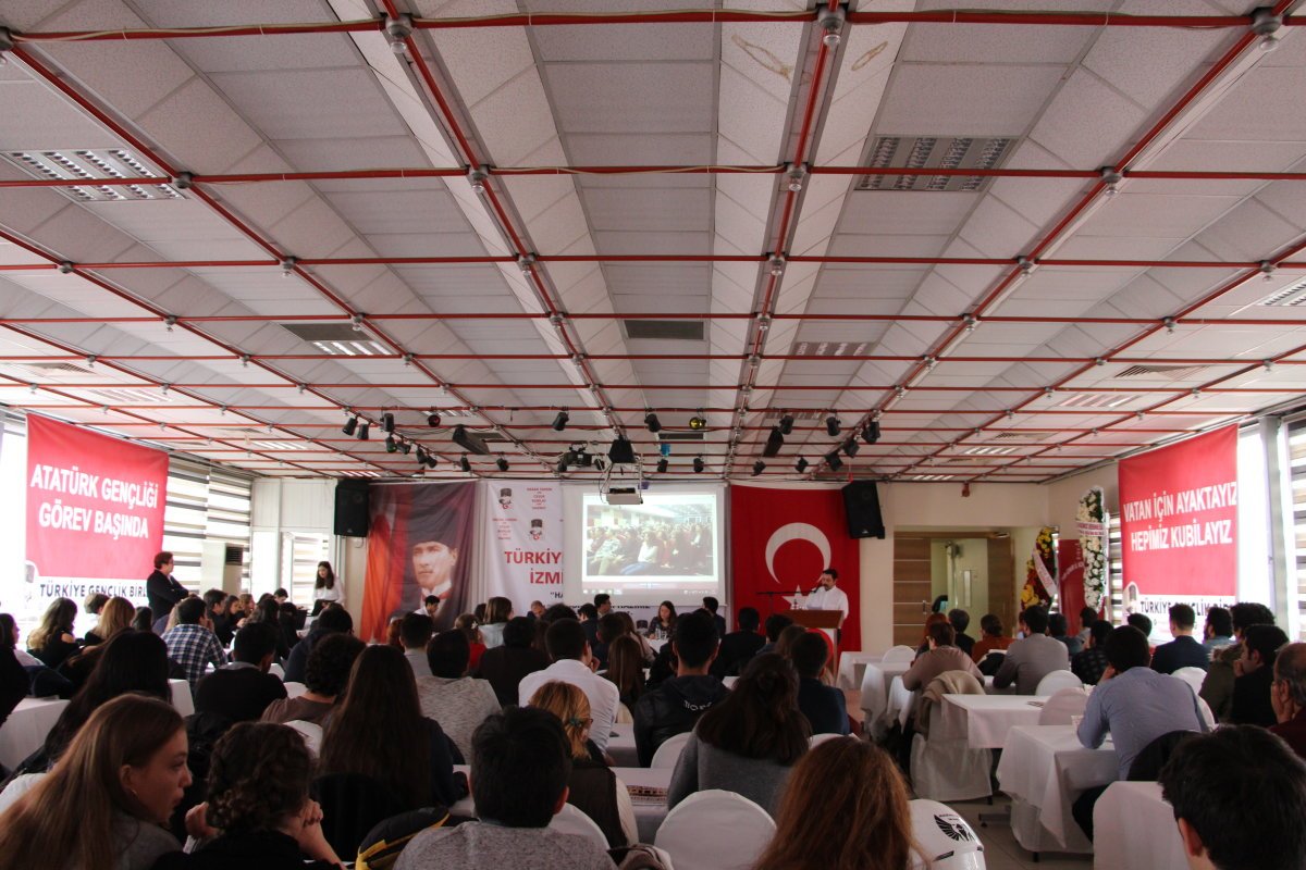 Cem Dikmen’in ardından konuşan TGB İzmir eski İl Başkanı Özgür Açıkgöz, “Geri dönüp de tarihe baktığımızda Türkiye ateşten süreçler içinden geçiyor ve daha da o ateşin harlanacağı günlere gitmektedir. Türk milletinin zaferlerle çıkacağı günlerin arifesinde olduğumuzun bilincindeyiz. Mazlum ve zalimleri ortadan kaldıracak olan Türkiye Gençlik Birliği kuşağıdır” diyerek yeni il yönetimine başarılar diledi.