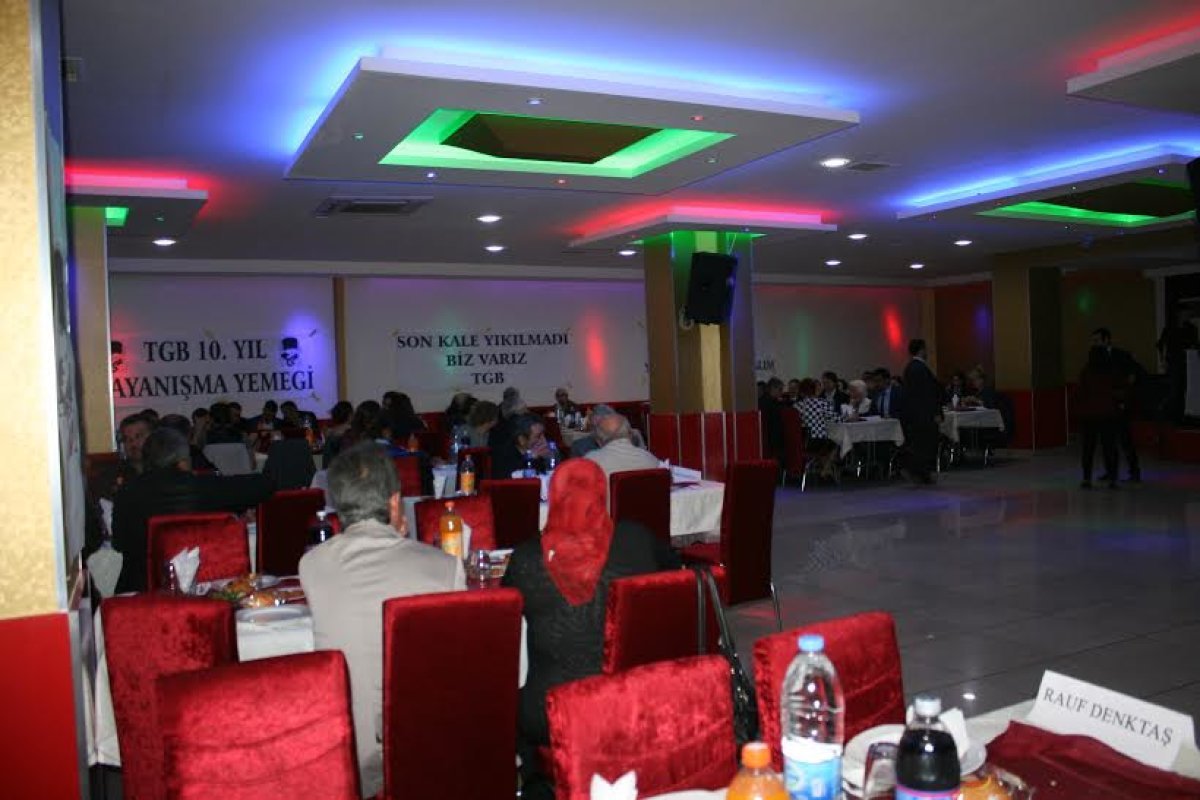 Anayasa Profesörü Süheyl Batum, Ulusal Kanal haber sunucusu Gülgün Feyman ve TGB Genel Başkanı Çağdaş Cengiz’in katıldığı dayanışma yemeğinde; TGB dostları da yerini aldı. Hakkında açılan davalar sebebiyle aramızda bulunamayan Aydınlık Gazetesi Yayın Koordinatörü İlker Yücel bir notla desteklerini bildirdi. “Şu Çılgın Gençler” kitap tanıtımı ve 10. Yıl videosu izlendikten sonra yemeğe geçildi. Daha sonra canlı müzik ile gece sonlandı.