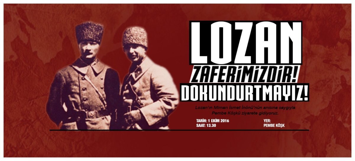“Lozan Zaferimizdir! Dokundurtmayız!” sloganıyla çıkan TGB, Lozan’ın Mimarı İsmet İnönü’nün anısına saygıyla Ankara’da Pembe Köşk’ü ziyarete gidecek.