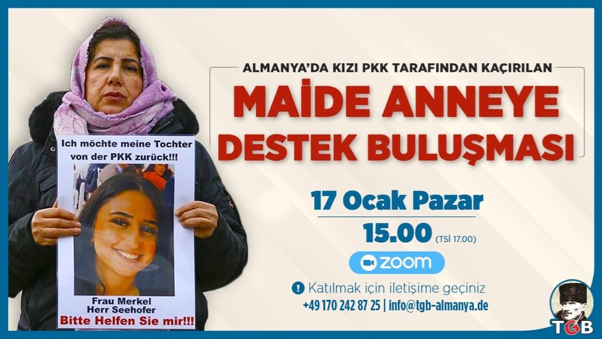 Türkiye Gençlik Birliği (TGB) bu mücadeleye omuz vermek için Maide Anne ile buluşuyor. TGB Almanya 17 Ocak Pazar günü Almanya saati ile 15.00’te Zoom programı üzerinden Maine Anneyle bir araya gelecek.