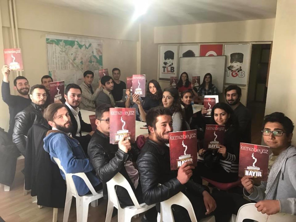 TGB Muğla Mühendislik, İİBF, Fen Edebiyat Birimleri ve diğer fakülte temsilcilikleri Kırmızı Beyaz Dergisi’nin “Vatan Senden Hayır Bekler” sloganlı 45. sayısını tartıştı.
