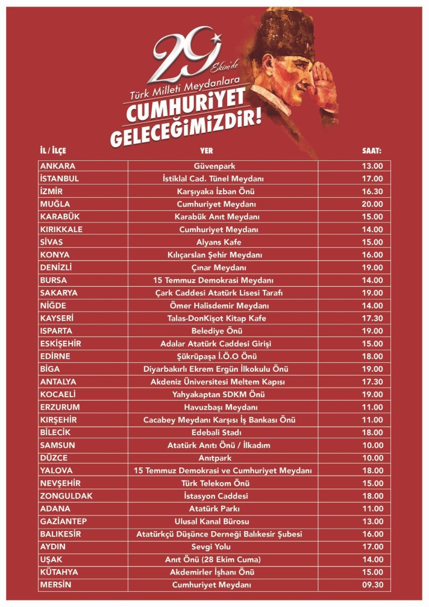 Türk Milleti 29 Ekim’de Meydanlarda! İşte İl İl Eylem Bilgileri