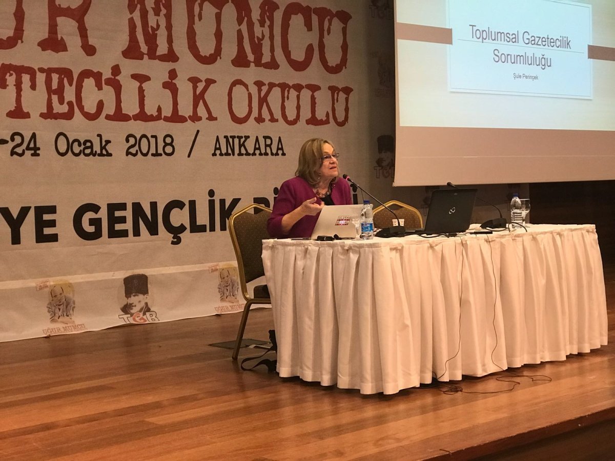 Gerçekle buluşturmanın, bilgilendirmenin bir görev olduğunu vurgulayan Şule Perinçek, toplumsal gazetecilik sorumluluğu konusunda verdiği derste şunları söyledi: “Özellikle toplumların bilgilenmeye, ilerlemeye ihtiyacının gelip dayattığı doğum sancıları çekildiği dönemde ilerlemenin ihtiyaç olduğunu bilmek için de bilgiye ihtiyacınız var. Haklar ancak bilirseniz sahip çıkılır. Gerçekle buluşma bilgilendirme bir görev bir hizmet. Bunun yolları bugün nasıl döşenir? 1- Bağımsızlık 2- Üretim ekonomisi 3- Terörün bitmesinden yanayız. 4-Terörü bitirmek için komşularımızla el ele vereceğiz. Basında tek de kalsanız cesaretli olacaksınız, haber peşinde koşacaksınız, etkili ve inandırıcı olacaksınız, cinsiyet, din, ırk ayrımcılığı yapmayacaksınız. Hırsınız hizmet hırsı olmalı.”