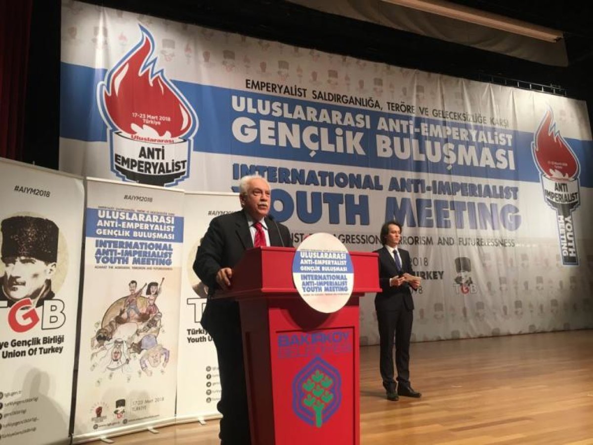 Bu toplantı çok anlamlı bir tarihte gerçekleşiyor. Bunun ulusal boyutu çokça vurgulandı. 18 Mart emperyalizmin bir türk tokadı yediği tarihtir. Çanakkale boğazından geçemeyen emperyalist kapitalistler o sulara gömüldüler ve insanlığın önü açıldı. Bugün gene böyle bir tarihte toplandık. Müjdeli haberlerle toplandık. Venezuela’da ABD’nin girişimleri boşa düşmüştür. Irak’ta ikinci İsrail devleti kurma gayesi boşa düşmüştür. Suriye’yi bölmek oradan devletçikler çıkarmak isteyenler hüsranlarla buluşmuşlardır. Sayın Beşar Esad mücadele ediyor. 1950’li yıllardan itibaren devletimizin her yerine yuvalanmış kontrgerilla artıkları bugün temizleniyor. 15 Temmuz’da girişmeye kalkıtıkları darbe girişimi, Türkiye Cumhuriyeti’nin büyük direnciyle karşılaştı. PKK’nın sözde bağımsızlık ayaklanmaları Türk vatandaşının ve Türk gençliğinin kararlılığıyla bastırıldı. Şimdi ABD askerinin üzerine yürüyen bir Türkiye var. Ve bu Türkiye’nin hazırlanmasında gençliğin büyük payı var.”