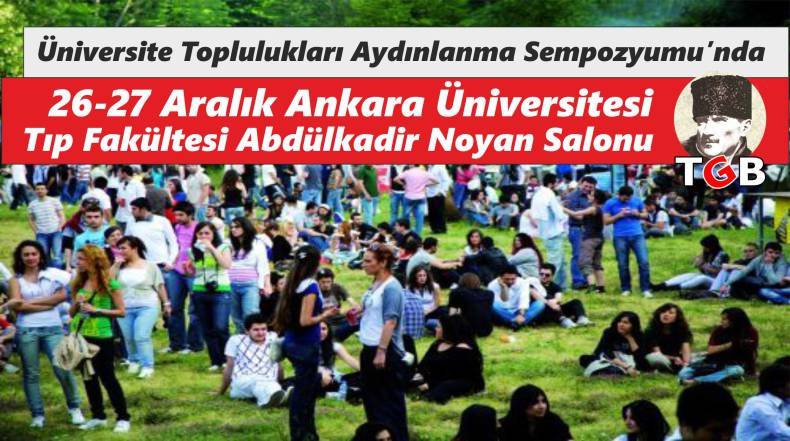 Türkiye’de büyük ses getiren “Aydınlanma Sempozyumu” yarından itibaren (26-27 Aralık) Ankara Üniversitesi Tıp Fakültesi Morfoloji Binası Dr. Abdulkadir Konferans Salonu’nda başlıyor.Ankara, İstanbul, İzmir başta olmak üzere Edirne’den Erzurum’a 100’ün üzerinde öğrenci topluluğu sempozyuma katılacak.İşte sempozyuma katılacak toplulukların bazıları: · ADANA ÇUKUROVA ÜNİVESİTESİ YAYIN KULÜBÜ , ÖĞRENCİ KONSEY BAŞKANLIĞI, ATATÜRKÇÜ DÜŞÜNCE KULÜBÜ· AFYON KOCATEPE ÜNİVERSİTESİ ATATÜRKÇÜ DÜŞÜNCE TOPLULUĞU· ANTALYA AKDENİZ ÜNİVERSİTESİ KİTAP TOPLULUĞU· BURSA ULUDAĞ ÜNİVERSİTESİ BİLİM VE DÜŞÜNCE TOPLULUĞU· DENİZLİ PAMUKKALE ÜNİVERSİTESİ DÜŞÜNCE KULÜBÜ, HALKÇI SAĞLIK KULÜBÜ· EDİRNE TRAKYA ÜNİVERSİTESİ ATATÜRKÇÜ DÜŞÜNCE TOPLULUĞU· GÜMÜŞHANE ÜNİVERSİTESİ ATATÜRKÇÜ DÜŞÜNCE TOPLULUĞU· ISPARTA SÜLEYMAN DEMİREL ÜNİVERSİTESİ KÜLTÜR VE KİTAP TOPLULUĞU, ATATÜRKÇÜ DÜŞÜNCE TOPLULUĞU, SESLİ BETİMLEME TOPLULUĞU, TÜRK YURDU TOPLULUĞU, HUKUK VE ADALET KULÜBÜ, POLİTİKA VE TASARIM KULÜBÜ, TÜRKÇE TOPLULUĞU, TARİH TOPLULUĞU, MÜNAZARA KULÜBÜ, EDEBİYAT KULÜBÜ, FİKİR KULÜBÜ, BASIN KULÜBÜ· İZMİR EGE ÜNİVERSİTESİ ATATÜRKÇÜ DÜŞÜNCE KULÜBÜ, BİYOLOJİK ARAŞTIRMALAR KULÜBÜ, BİLİM VE TEKNOLOJİ TOPLULUĞU, EGELİ GEZGİNLER TOPLULUĞU, GENÇ GİRİŞİMCİLER TOPLULUĞU, BRİÇ TOPLULUĞU, KİTAP TOPLULUĞU, MÜNAZARA TOPLULUĞU, SOSYAL ARAŞTIRMALAR TOPLULUĞU, VİYANA VALSİ TOPLULUĞU, ULUSLARARASI İLİŞKİLER TOPLULUĞU, İŞLETME KULÜBÜ, SANAT TARİHİ KULÜBÜ· İZMİR DOKUZ EYLÜL ÜNİVERSİTESİ, BİLİM VE FELSEFE TOPLULUĞU, CUMHURİYETÇİ DÜŞÜNCE TOPLULUĞU, ATATÜRKÇÜ DÜŞÜNCE TOPLULUĞU, BİSİKLET TOPLULUĞU, TOPLUMCU ÖĞRENCİLER TOPLULUĞU, EKONOMETRİ KULÜBÜ, İKTİSAT KULÜBÜ, MÜNAZARA TOPLULUĞU, KAMU YÖNETİMİ VE BİLİMSEL DÜŞÜNCE, İŞLETME TOPLULUĞU, MALİYE TOPLULUĞU, SOSYAL POLİTİKA TOPLULUĞU, SİYASET BİLİMİ TOPLULUĞU, TÜRK DÜNYASI ARAŞTIRMA TOPLULUĞU· İZMİR EGE ÜNİVERSİTESİ TIP FAKÜLTESİ ATATÜRKÇÜ DÜŞÜNCE KULÜBÜ· İZMİR KATİP ÇELEBİ ÜNİVERSİTESİ ATATÜRKÇÜ DÜŞÜNCE KULÜBÜ· İZMİR ÜNİVERSİTESİ ATATÜRKÇÜ DÜŞÜNCE KULÜBÜ· KOCAELİ ÜNİVERSİTESİ FİKİR KULÜBÜ· KAYSERİ ERCİYES ÜNİVESİTESİ DÜŞÜNCE VE ARTIŞMA KULÜBÜ· KIRIKKALE ÜNİVERSİTESİ ATATÜRKÇÜ DÜŞÜNCE KULÜBÜ· SAKARYA ÜNİVERSİTESİ ATATÜRKÇÜ DÜŞÜNCE KULÜBÜ, MÜZİK TOPLULUĞU, AR-GE TOPLULUĞU· YALOVA ÜNİVERSİTESİ ATATÜRKÇÜ FİKİR KULÜBÜ· İSTANBUL ÜNİVERSİTESİ BEYAZIT HALKÇI HUKUK KULÜBÜ, EKONOMİ POLİTİK KULÜBÜ, ATATÜRKÇÜ DÜŞÜNCE KULÜBÜ· İSTANBUL ÜNİVERSİTESİ ÇAPA TIP FAKÜLTESİ ATATÜRKÇÜ DÜŞÜNCE KULÜBÜ, HALKÇI SAĞLIK KULÜBÜ· YILDIZ TEKNİK ÜNİVERSİTESİ DAVUTPAŞA ATATÜRKÇÜ DÜŞÜNCE KULÜBÜ· BOĞAZİÇİ ÜNİVERSİTESİ ATATÜRKÇÜ DÜŞÜNCE KULÜBÜ· YILDIZ TEKNİK ÜNİVERSİTESİ BEŞİKTAŞ ATATÜRKÇÜ DÜŞÜNCE KULÜBÜ· İSTANBUL TEKNİK ÜNİVERSİTESİ UYGARLIK TARİHİ KULÜBÜ· MARMARA ÜNİVERSİTESİ GÖZTEPE KAMPÜSÜ ATATÜRKÇÜ DÜŞÜNCE KULÜBÜ· MARMARA ÜNİVERSİTESİ BAŞIBÜYÜK KAMPÜSÜ ATATÜRKÇÜ DÜŞÜNCE KULÜBÜ· MARMARA ÜNİVERSİTESİ NİŞANTAŞI KAMPÜSÜ ATATÜRKÇÜ DÜŞÜNCE KULÜBÜ, DEĞİRMEN İLETİŞİM KULÜBÜ· KADİR HAS ÜNİVERSİTESİ ATATÜRÇÜ DÜŞÜNCE KULÜBÜ· İSTANBUL AYDIN ÜNİVERSİTESİ ATATÜRKÇÜ DÜŞÜNCE KULÜBÜ· GELİŞİM ÜNİVERSİTESİ ATATÜRKÇÜ DÜŞÜNCE KULÜBÜ· YENİ YÜZYIL ÜNİVERSİTESİ ATATÜRKÇÜ DÜŞÜNCE KULÜBÜ· İSTANBUL ÜNİVERSİTESİ AVCILAR ATATÜRKÇÜ DÜŞÜNCE KULÜBÜ· KARABÜK ÜNİVERSİTESİ ATATÜRKÇÜ DÜŞÜNCE KULÜBÜ, ENDÜSTRİ MÜHENDİSLİĞİ KULÜBÜ, ARKEOLOJİ KULÜBÜ, MARKA PATENT KULÜBÜ, RAYLI SİSTMLER MÜHENDİSLİĞİ KULÜBÜ, METALURJİ VE MALZEME MÜHENDİSLİĞİ KULÜBÜ· OSMANGAZİ ÜNİVERSİTESİ FİKİR KULÜBÜ· HACETTEPE ÜNİVERSİTESİ SIHHİYE-HEMŞİRELİK KULÜBÜ· HACETTEPE ÜNİVERSİTESİ BEYTEPE ÜTOPYA KULÜBÜ· BİLKENT ÜNİVERSİTESİ ÜTOPYA VE BİLİM· KÜTAHYA ÜNİVERSİTESİ ATATÜRKÇÜ DÜŞÜNCE KULÜBÜ· KARS KAFKAS ÜNİVERSİTESİ ATATÜRKÇÜ DÜŞÜNCE KULÜBÜ· ERZURUM ATATÜRK ÜNİVERSİTESİ ATATÜRKÇÜ DÜŞÜNCE KULÜBÜ· KONYA SELÇUK ÜNİVERSİTESİ ATATÜRKÇÜ DÜŞÜNCE KULÜBÜ· KONYA NECMETTİN ERBAKAN ÜNİVERSİTESİ ATATÜRKÇÜ DÜŞÜNCE KULÜBÜ· KONYA NECMETTİN ERBAKAN ÜNİVERSİTESİ TİYATRO KULÜBÜ· BURDUR MEHMET AKİF ERSOY ÜNİVERSİTESİ ATATÜRKÇÜ DÜŞÜNCE KULÜBÜ, TÜRKÇE KULÜBÜ· ERZİNCAN ÜNİVERSİTESİ ATATÜRKÇÜ DÜŞÜNCE KULÜBÜ· TEKİRDAĞ NAMIK KEMAL ÜNİVERSİTESİ ATATÜRKÇÜ DÜŞÜNCE KULÜBÜ· KASTAMONU ÜNİVERSİTESİ ATATÜRKÇÜ DÜŞÜNCE KULÜBÜ· KIRKLARELİ ÜNİVERSİTESİ ATATÜRKÇÜ DÜŞÜNCE KULÜBÜ· SİVAS CUMHURİYET ÜNİVERSİTESİ ATATÜRKÇÜ DÜŞÜNCE KULÜBÜ, ANTROPOLOJİ KULÜBÜ