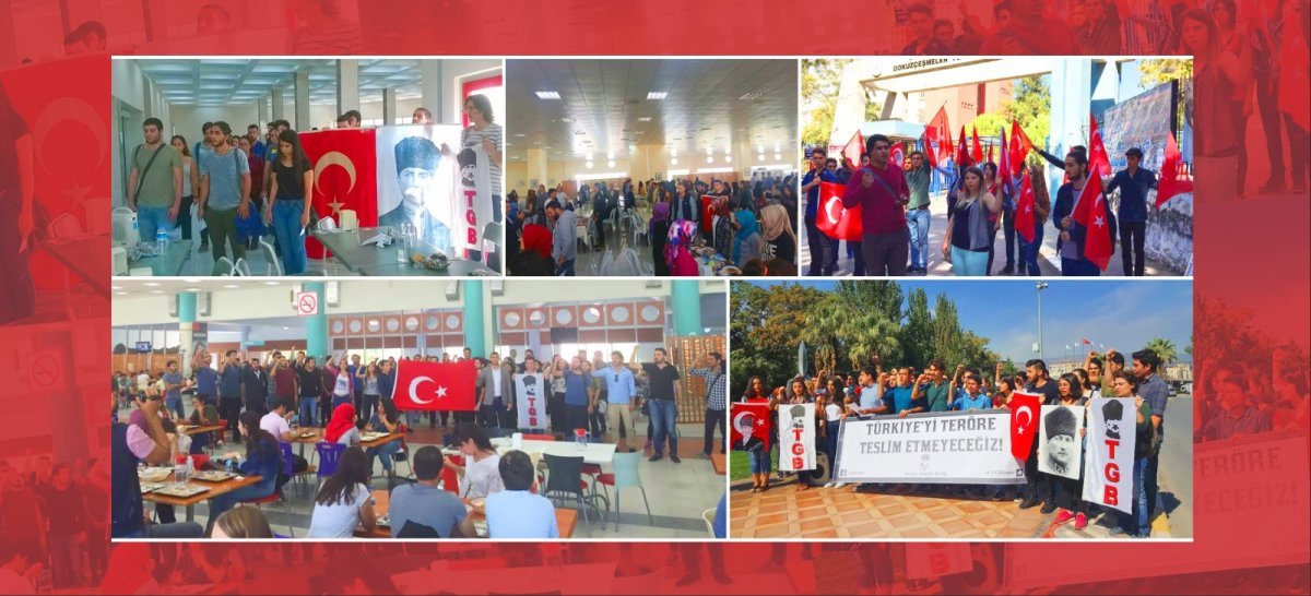 Türkiye Gençlik Birliği ve öğrenci topluluklarının önderliğinde saygı duruşları düzenlendi, basın açıklamaları yapıldı. Kampüsler Türk bayrakları ile donatıldı.Yurt çapında gerçekleşen eylemlere binlerce öğrenci katıldı. Atatürk gençliği, ”Türkiye’yi Teröre Teslim Etmeyeceğiz” mesajı verildi.