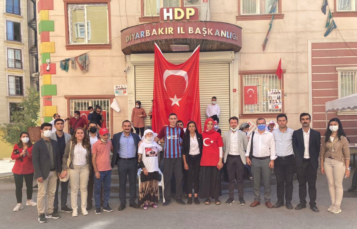 HDP Diyarbakır İl Başkanlığı’nın kapısını kilit vurduran aileler, bugün tüm Türkiye’ye, PKK terörüne karşı Diyarbakır’da olma çağrısı yaptılar. HDP’nin, kapatma davasında Anayasa Mahkemesinden (AYM) talep ettiği ek sürenin kabul edilmesine de aileler tepki gösterdi.