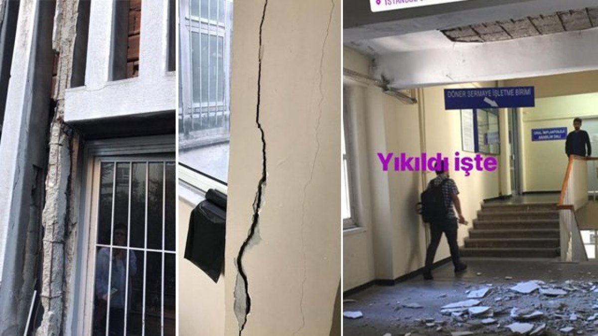 Deprem öncesinde binada çatlaklar oluşmaya başladığına ve sıvalarının döküldüğüne dikkat çeken öğrenciler, “Biz Çapa dişhekimliği öğrencileri bugün ne yapacağımızı bile bilmez halde kısa süren bu depremde gerçek paniği yaşadık, bunun nedeni deprem olmasa bile kolonların, taşların düştüğü bir binada eğitim görmemizdir” tepkisi gösterdi.
