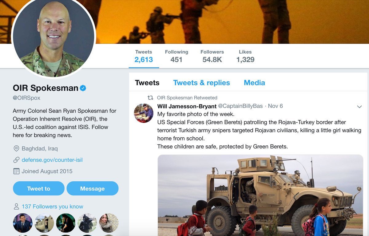 ABD öncülüğündeki askeri koalisyonun Sözcüsü Albay Sean Ryan, sosyal medya platformu Twitter üzerinden Mehmetçiğe hakaret içeren bir paylaşım yaptı.