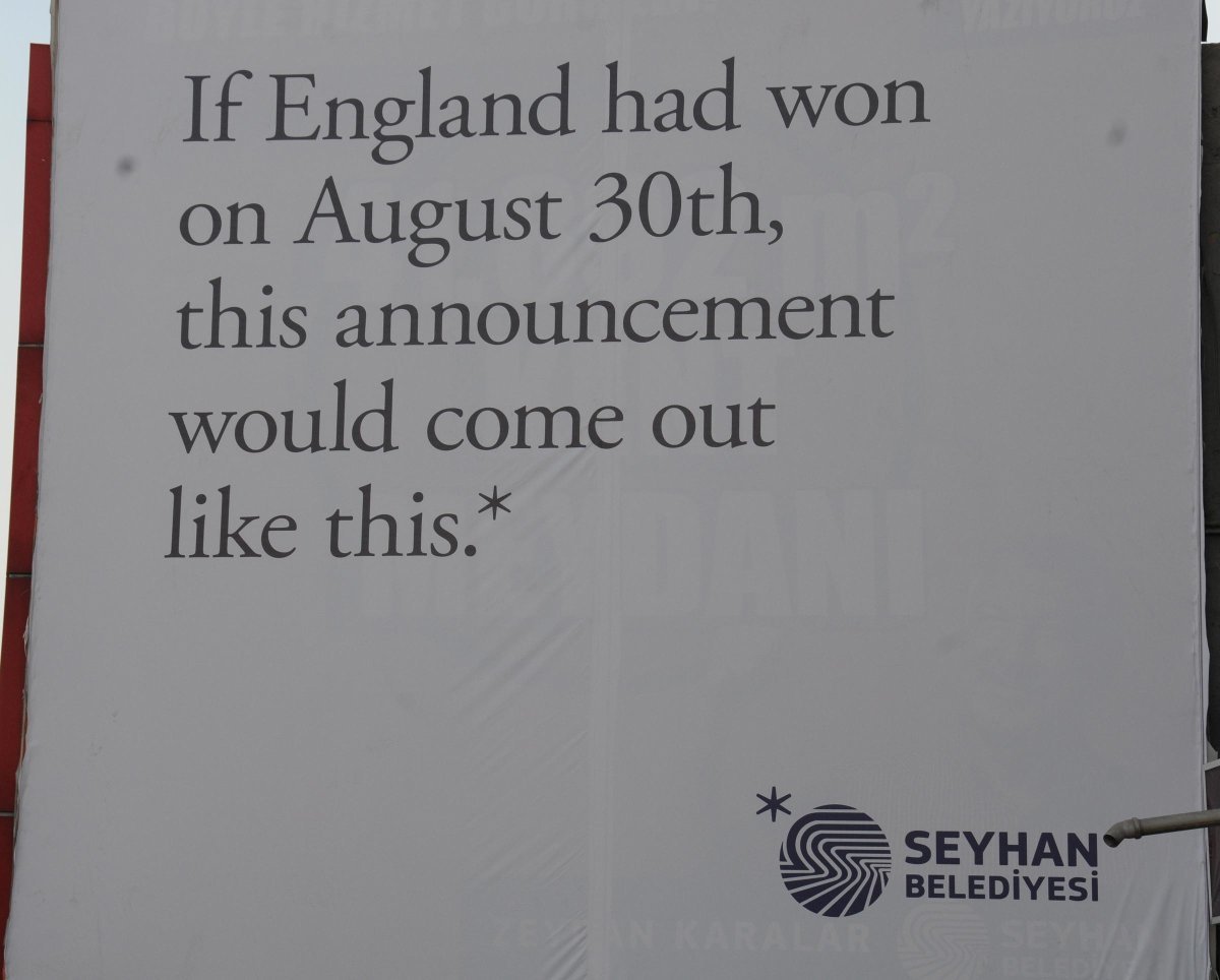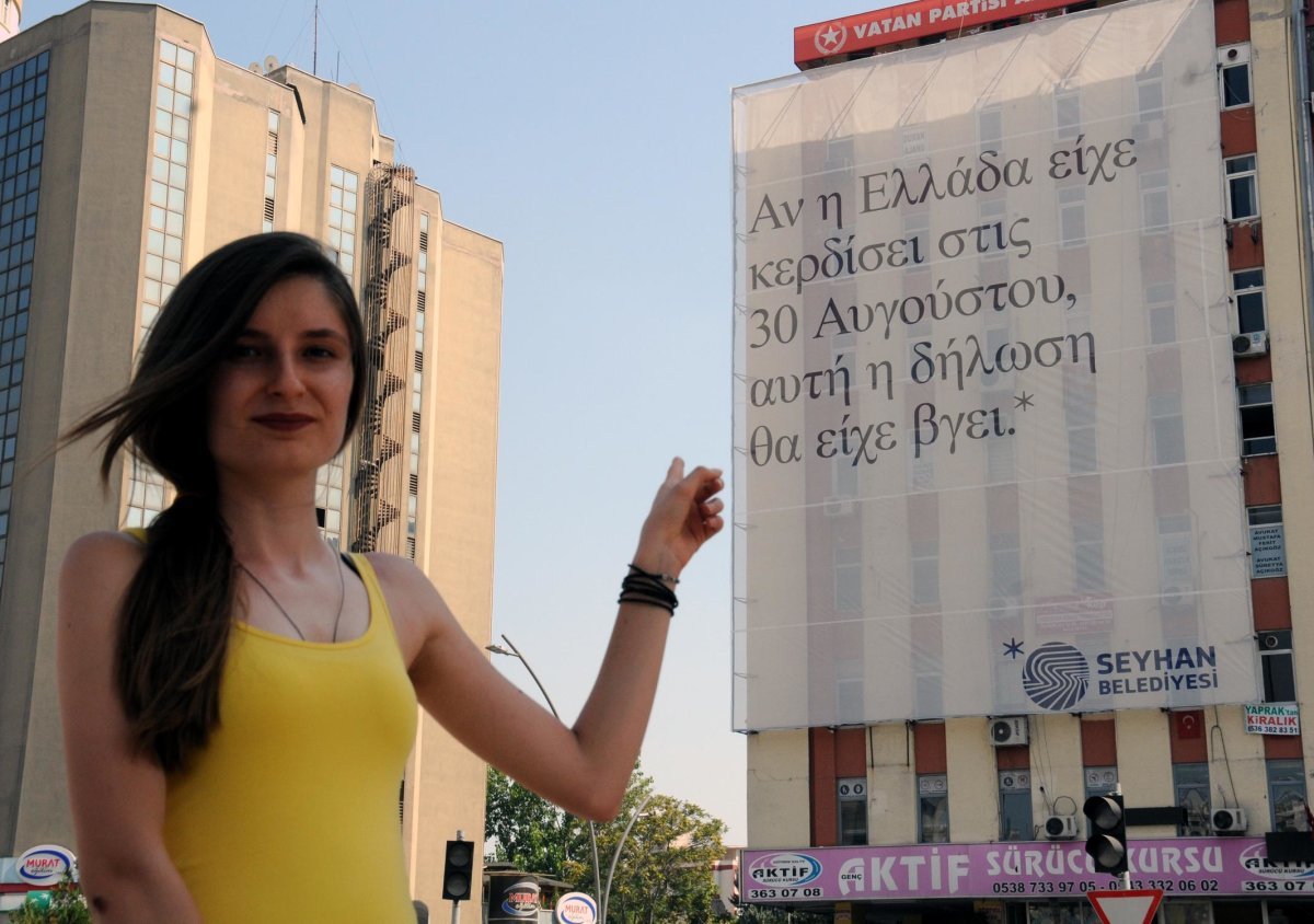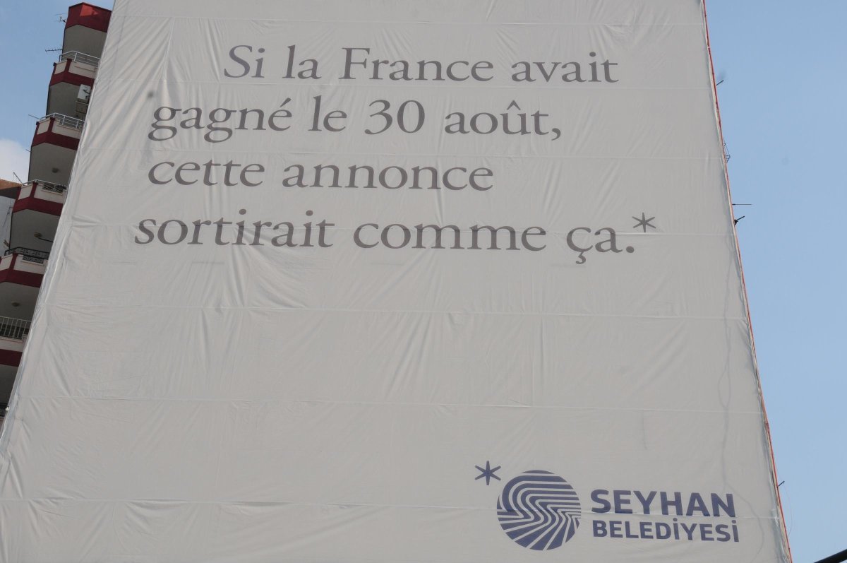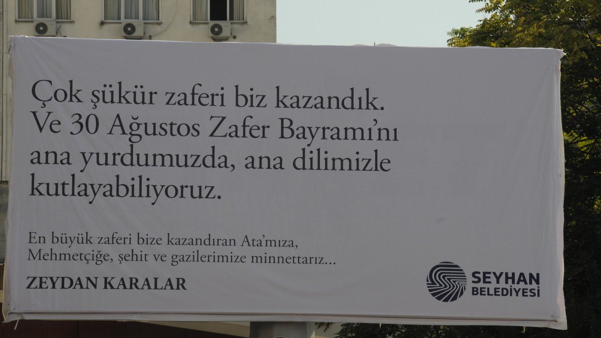 Adana’da merkez Seyhan ilçe Belediyesi’nin 30 Ağustos Zafer Bayramı’nın 96’ncı yıl dönümü öncesi kentin farklı noktalarına astığı Yunanca, İngilizce ve Fransızca afişler dikkat çekti.