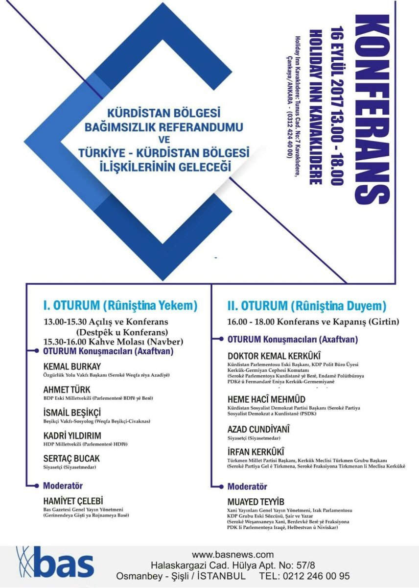 PKK’ya yakınlığı ile bilinen Bas gazetesi, Irak’ın kuzeyinde yapılması planlanan referandum öncesi “Kürdistan” konferansı düzenleyecek.