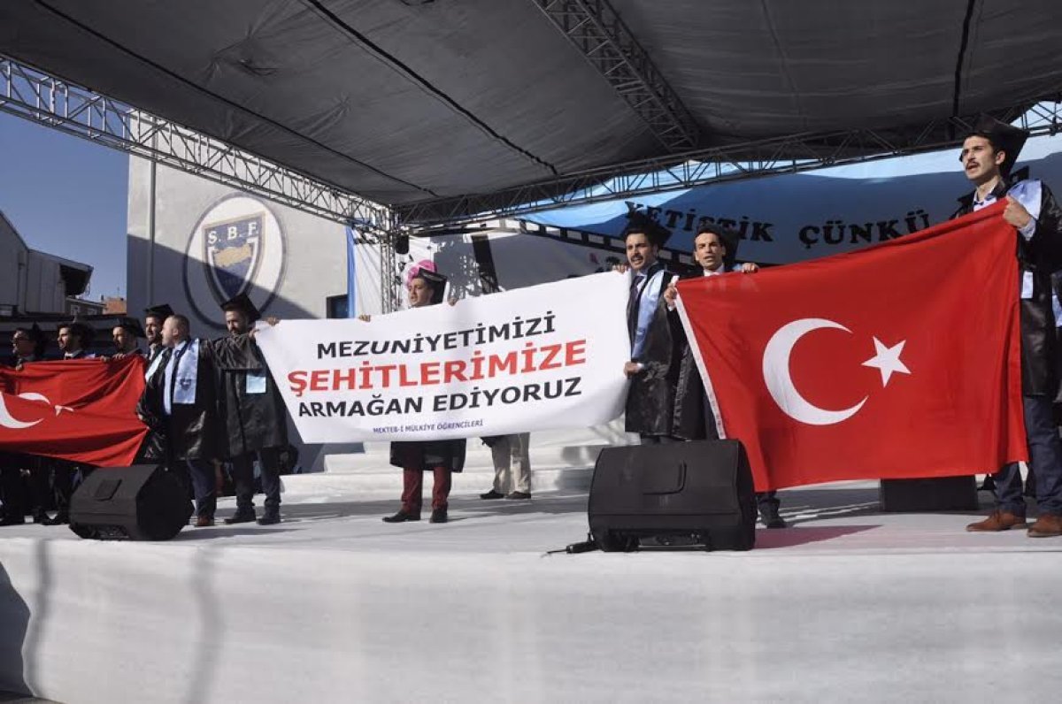 Ankara Üniversitesi Siyasal Bilgiler Fakültesi(Mülkiye) 156. dönem mezunları, mezuniyetlerini Doğu’da ve Güneydoğu’da ABD’nin kara gücü PKK’ya karşı savaşırken şehit düşen Mehmetçiklerimize armağan etti.