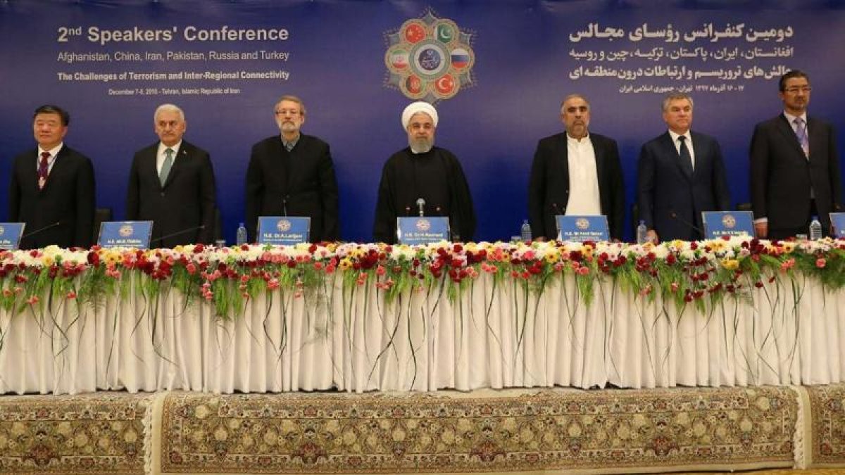 Tahran’da gerçekleştirilen “Terörizmle ve Aşırıcılıkla Mücadele konulu Meclis Başkanları İkinci Toplantısı”, İran Cumhurbaşkanı Hasan Ruhani, İran Meclis Başkanı Ali Laricani, Çin Meclis Başkan Yardımcısı Çen Zu, Rusya Devlet Duması Başkanı Vyacheslav Volodin, Pakistan Milli Meclisi Başkanı Esed Kayser, Afganistan Ulusal Meclis Başkanı Abdul Rauf İbrahimi’nin katılımıyla yapıldı.