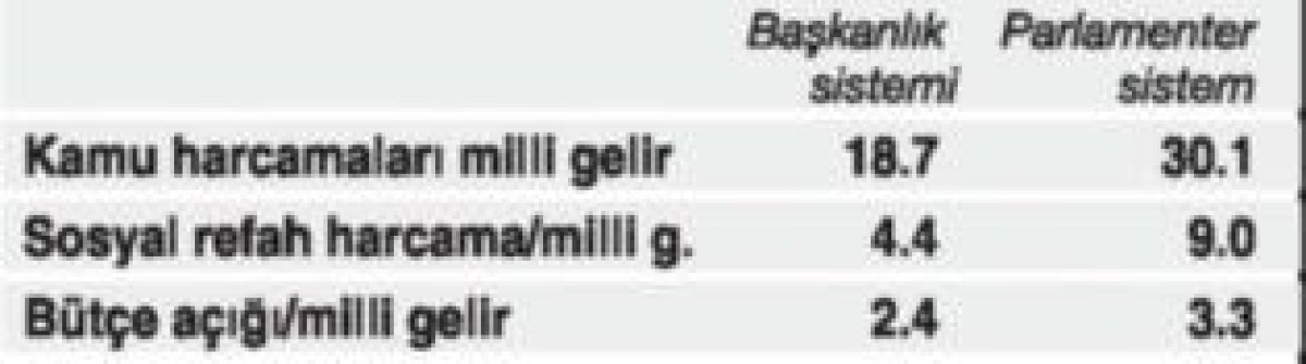 “York Üniversitesi ekonomi bölümünden Profesör Dr. Gülçin Özkan’ın dünyada başkanlık rejimlerini ve parlamenter demokratik sistemleri ekonomiye etkileri açısından inceleyen önemli bir araştırması var. Bu araştırmada 85 ülke, başka bir İngiliz profesörün benzer araştırmasında da 119 ülke inceleniyor. Az buz değil!