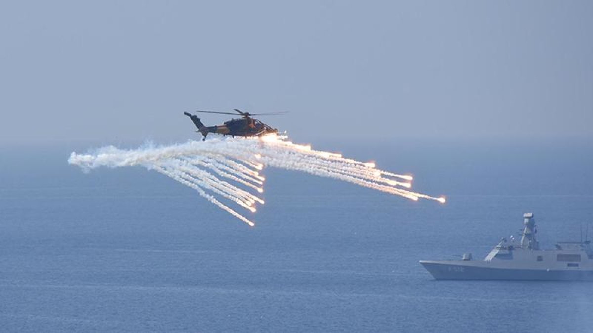 İndirme yapılan bölgelerde tespit edilen düşman kuvvetleri, bu tatbikatta ilk kez kullanılan silahlı insansız hava araçları (SİHA) tarafından vuruldu. Düşman tanklarını temsil eden kırmızı noktalar füzelerle vuruldu. Bu sırada 4 Atak helikopteri, yan yana belirlenen hedefe ateş edip yok etti. Gerekli çıkarma hazırlıklarının tamamlanmasıyla da tank ve zırhlı personel taşıyıcıların bulunduğu çıkarma gemileri kıyıya yanaştı. Amfibi deniz piyade birliklerinin birinci dalgası denizden karaya çıkartıldı. Çıkarma anında ise düşman kuvvetlerinin hava unsurlarının müttefik ülke askerlerini ateş altına almasına, hava savunma sistemleriyle karşılık verildi.
