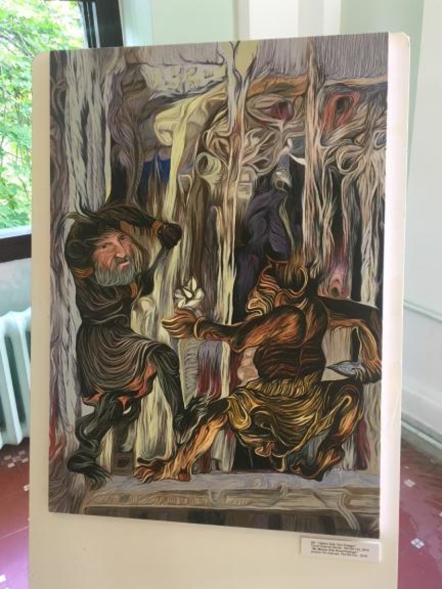 İçeriksel olarak da Çin resminde yapılmak istenen, zamanı ruloya kıvırarak uzama çevirmek beni besledi. Bu da şu anlama gelir; resmi bitirdiyseniz, yani zamanı çözdüyseniz uzama çevirmek isterseniz bunun için rulo yaparsınız. Bu yüzden bu sergideki bütün mekanlar figürlere göre ters çevrilmiştir.”