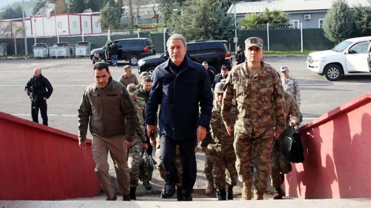 Denetleme ve incelemelerine buradaki birliklerde devam eden Bakan Akar, daha sonra MİT Başkanı Fidan ile bir araya geldi. Akar, Genelkurmay Başkanı Orgeneral Güler, Kara Kuvvetleri Komutanı Orgeneral Dündar ve MİT Başkanı Fidan’ın da katıldığı heyetler arası toplantıda, Suriye’nin kuzeyindeki son gelişmeler değerlendirildi.