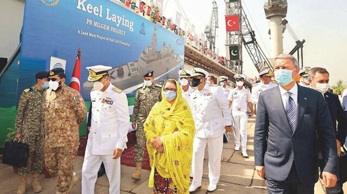 Yerli savunma sanayisinin tek kalemde gerçekleştirdiği en büyük ihracat atılımı olan proje kapsamında MİLGEM korvetlerinin üçüncüsü için Karaçi Tersanesi’nde tören düzenlendi. Törende konuşan Akar, şunları söyledi: “Türk milletini yalnız bırakmayan, kederde ve kıvançta daima bir ve beraber olduğumuz Pakistanlı kardeşlerimizin fedakarlıklarını asla unutmayacağız.”