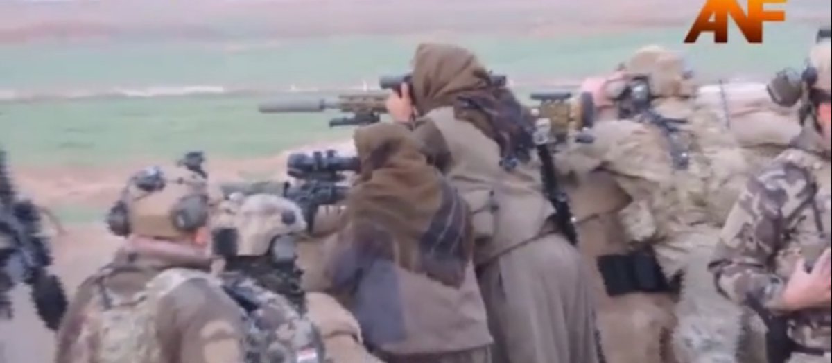 PKK’ya yakınlığı ile bilinen bir ajans, Irak’ın Kerkük kentindeki bir mevzinin görüntülerini yayınladı. Mevzide, Amerikalı askerlerin PKK’lılara talimat verdiği, PKK’lıların da gösterilen hedefleri vurduğu görülüyor.
