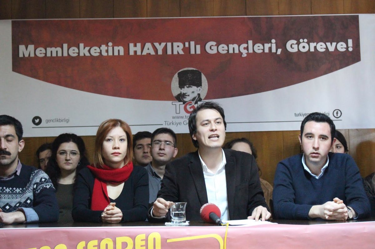 Basın toplantısı ile mücadele takvimini ve sloganlarını açıklayan Genel Başkanımız Çağdaş Cengiz, Türk Gençliği’nin 2. İstiklal Savaşı zamanlarında da milletin geleceği için üzerine düşeni referandumda hayır oyu vererek yapacağını belirtti. Cengiz; ”Milletimiz bizden, vatana sahip çıkmamızı ister. Türk milleti okula gönderdiği kızına, cepheye yolladığı oğluna her zaman “Vatana millete hayırlı olun” dedi. O temenni cümleleri boşuna kurulmadı. Vatan bizden ve bu satırları okuyan senden ne ister biliyoruz: Vatan bizden hayır bekler.” dedi.