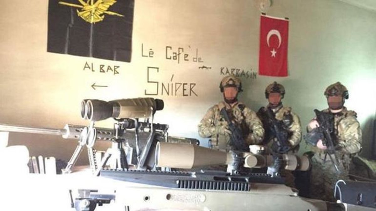 Askeri kaynaklar, El Bab’da terör örgütü IŞİD’in evlerde ve sokaklarda akıl almaz yöntemlerle tuzaklama yaptığını belirterek, bu tuzakların temizlenmesinin zaman aldığını, bu nedenle tam kontrol sağlamanın uzadığını söyledi. Aynı kaynaklar, Fırat Kalkanı Harekâtı’nın başladığı 24 Ağustos 2016 ile 9 Şubat 2017 tarihleri arasında Suriye’nin kuzeyinde ele geçirilen bölgelerde 3 bin 750 EYP ve 66 mayının imha edildiği bilgisini paylaştı. TSK’nın Fırat Kalkanı Harekâtı ile ilgili bilgilendirmesine göre, dün sabah saat 07.00’ye kadar yapılan hava harekâtları ve karadaki çatışmalar sonucu 26 IŞİD’li terörist öldürüldü. Türk savaş uçakları, 41 bina ile 1 bombalı araç ve 1 komuta kontrol merkezini imha etti. Topçu atışlarıyla da 135 IŞİDhedefi baskı altına alındı. Bu arada Türk Özel Kuvvetler’e bağlı keskin nişancılar, El Bab ile Kabbasin arasındaki bir bölgede IŞİD’den aldıkları bir binaya ‘Sniper Kafe’ adını verdi. Özel kuvvetler, Türk bayrağı astıkları duvara Fransızca, ‘Le Cafe de Sniper’ yazdı. Fotoğrafı, güvenlik uzman Abdullah Ağar sosyal medyada paylaştı.