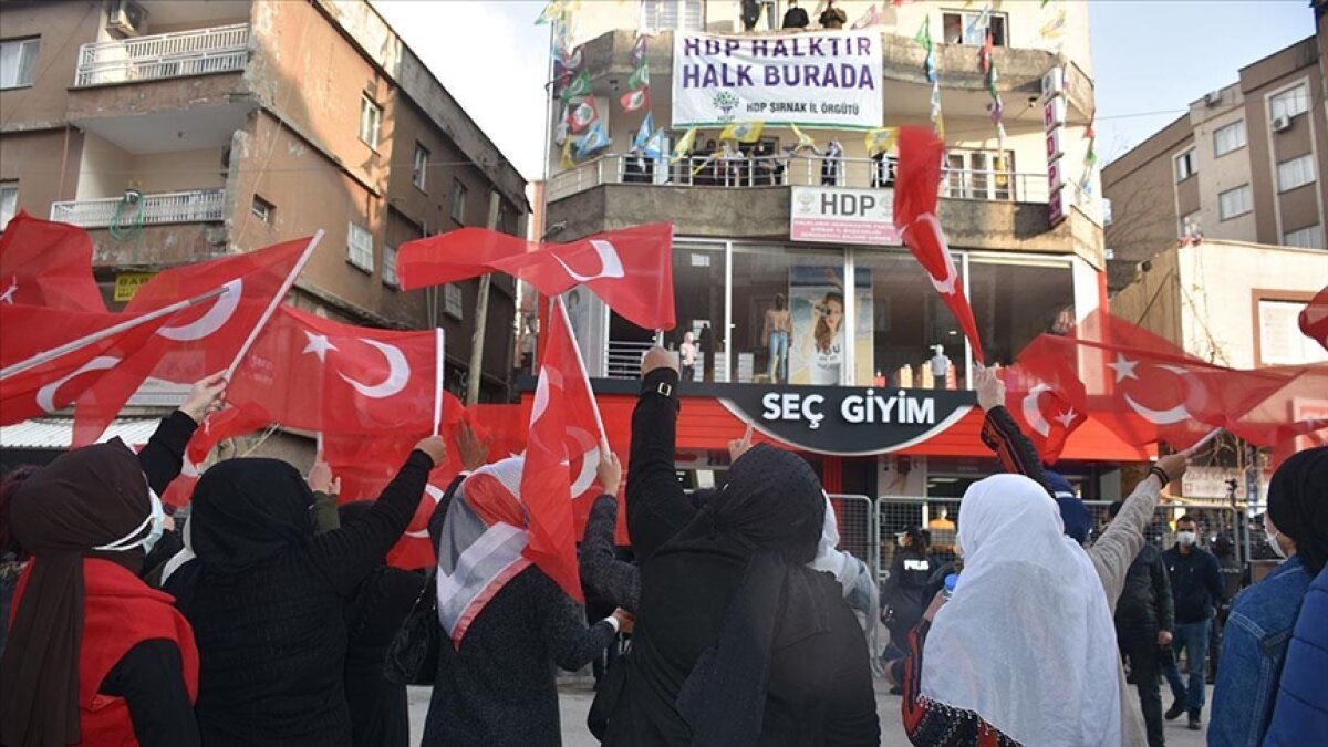 PKK’lı teröristlerce çocukları dağa kaçırılan ve yakınlarını terör saldırılarında kaybeden Şırnaklı kadınlar, şehit ve gazi aileleri ile sivil toplum kuruluşlarının kadın üyeleri, Şehit Üsteğmen Mehmet Esin Caddesi’nde gerçekleştirdikleri yürüyüşün ardından HDP İl Başkanlığı binası önüne geldi.